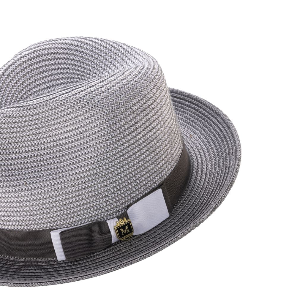 Rubique Collection: Montique Men's Braided Two Tone Stingy Brim Pinch Fedora Hat in Grey