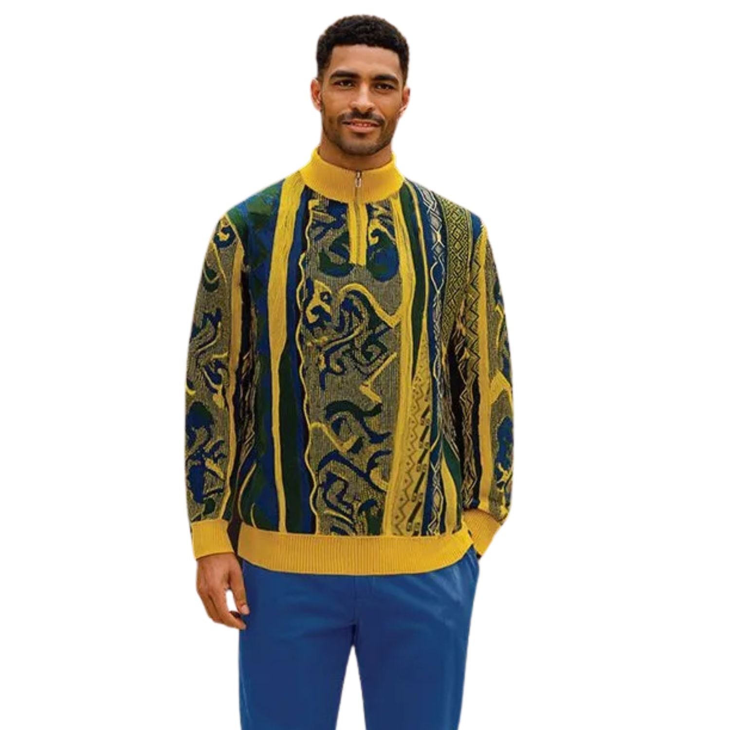 Marcari Collection: Stacy Adams Quarter Zip Pullover Sweater in Mustard