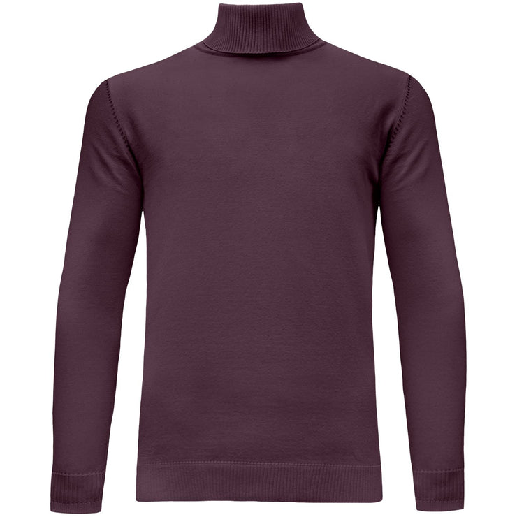 Long-sleeve knit turtleneck in purple with a clean, minimal front. Soft stretch knit with ribbed neck, cuffs, and hem for a secure, comfortable fit. From Bagazio.