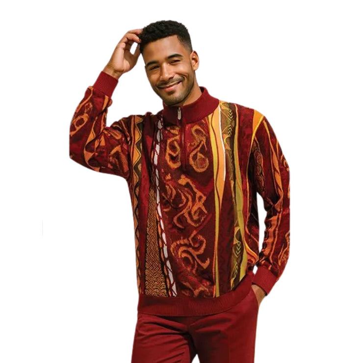Marcari Collection: Stacy Adams Quarter Zip Pullover Sweater in Red