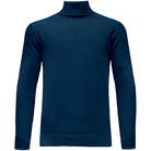 Long-sleeve knit turtleneck in navy with a clean, minimal front. Soft stretch knit with ribbed neck, cuffs, and hem for a secure, comfortable fit. From Bagazio.