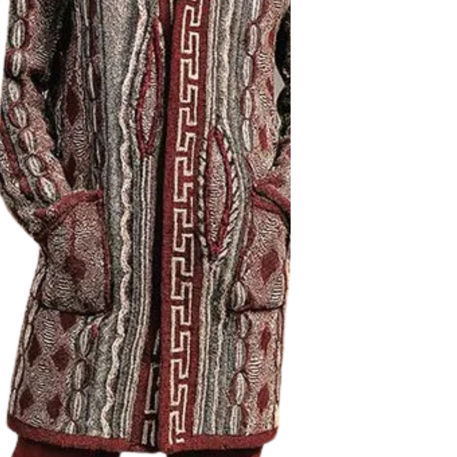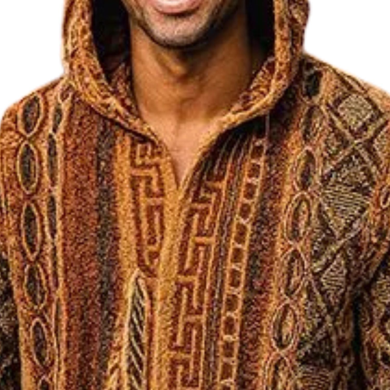 Solace Collection: Brown Patterned Wool Blend 3/4 Hooded Jacket