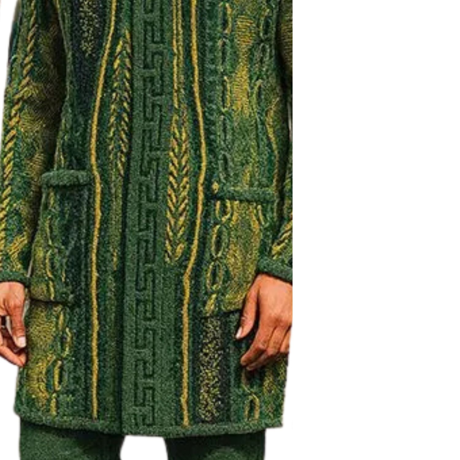 Solace Collection: Green Patterned Wool Blend 3/4 Hooded Jacket