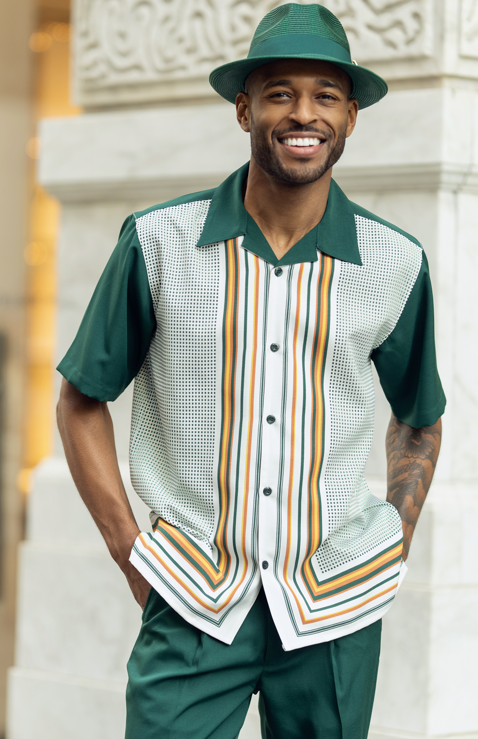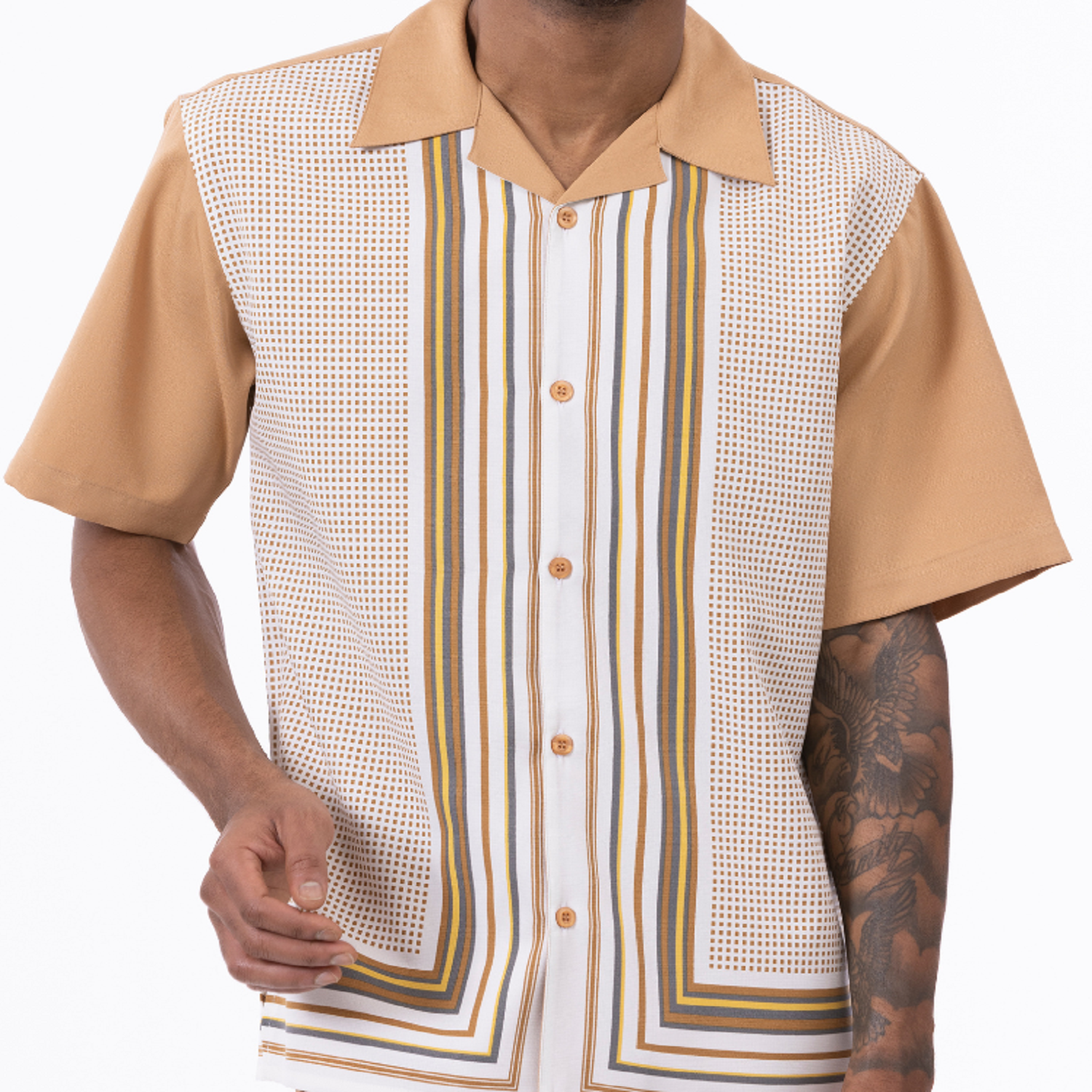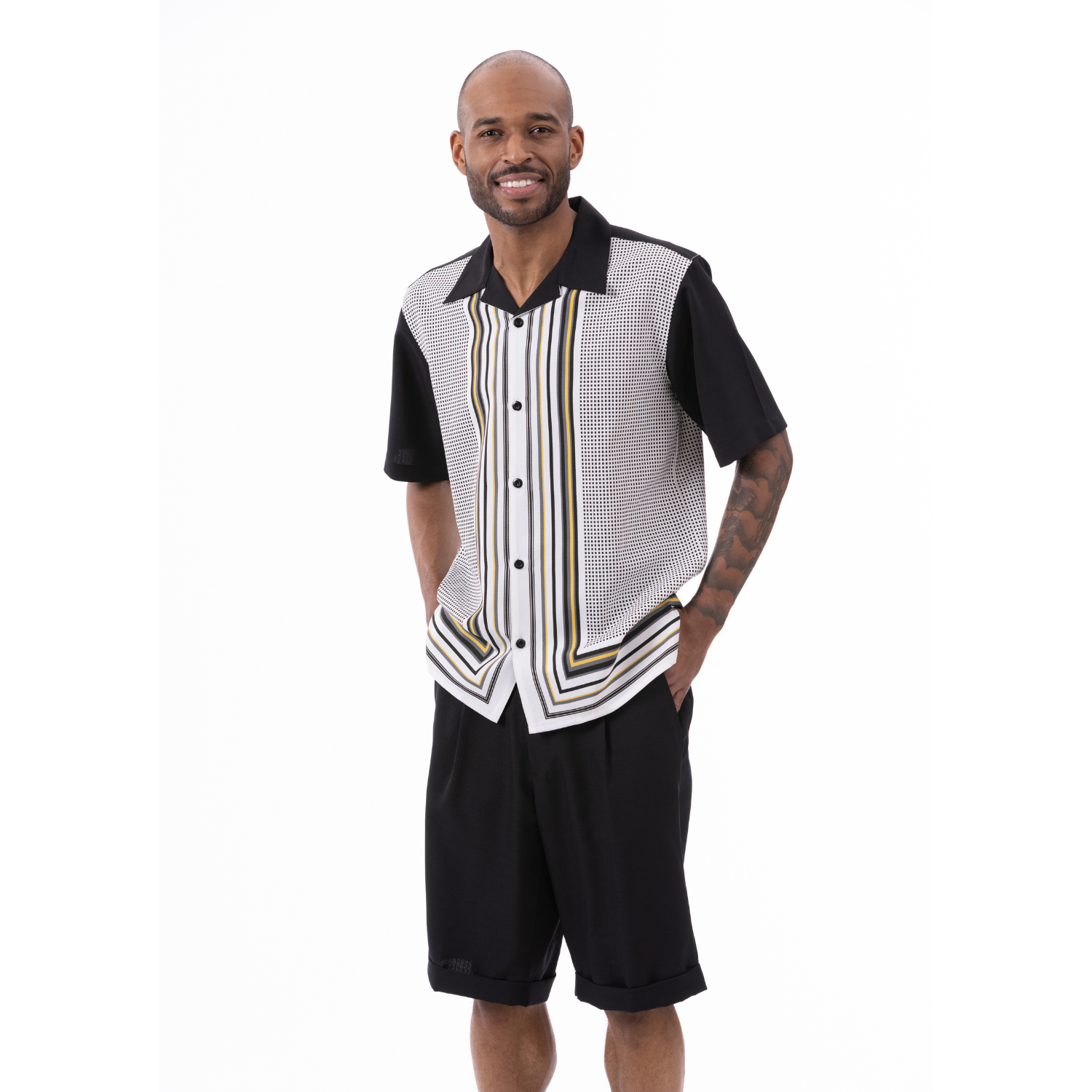 Make a bold entrance with the Urbchic Collection’s symmetry-patterned walking suit, designed for standout style and comfort. This two-piece short sleeve set features a vibrant geometric pattern on a premium polyester shirt, paired with non-pleated matching pants. The open collar and button closure deliver a relaxed yet polished vibe—ideal for spring parties, summer outings, or casual get-togethers. Crafted with breathable fabric and refined details, this set also comes in a short pants version for even more seasonal versatility.