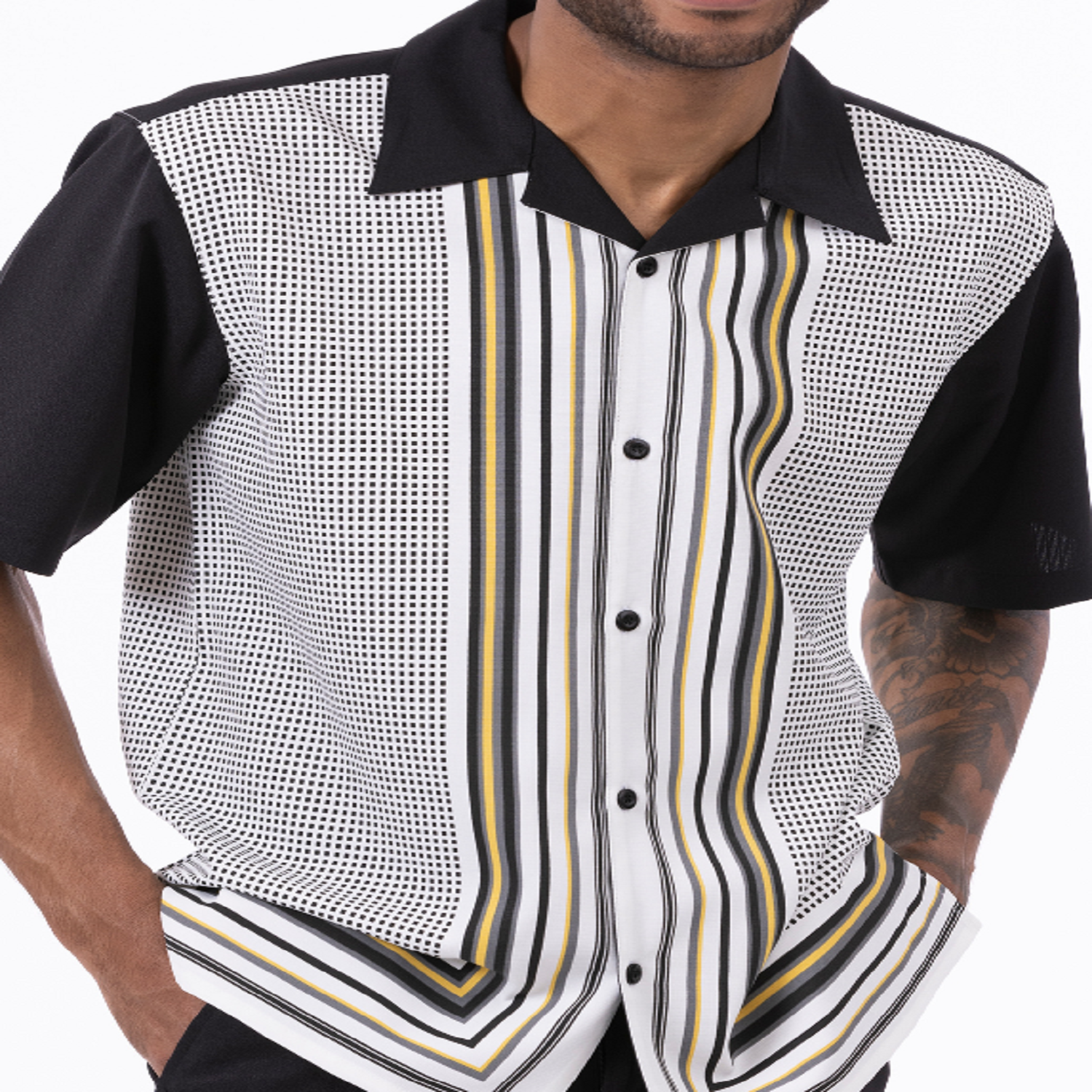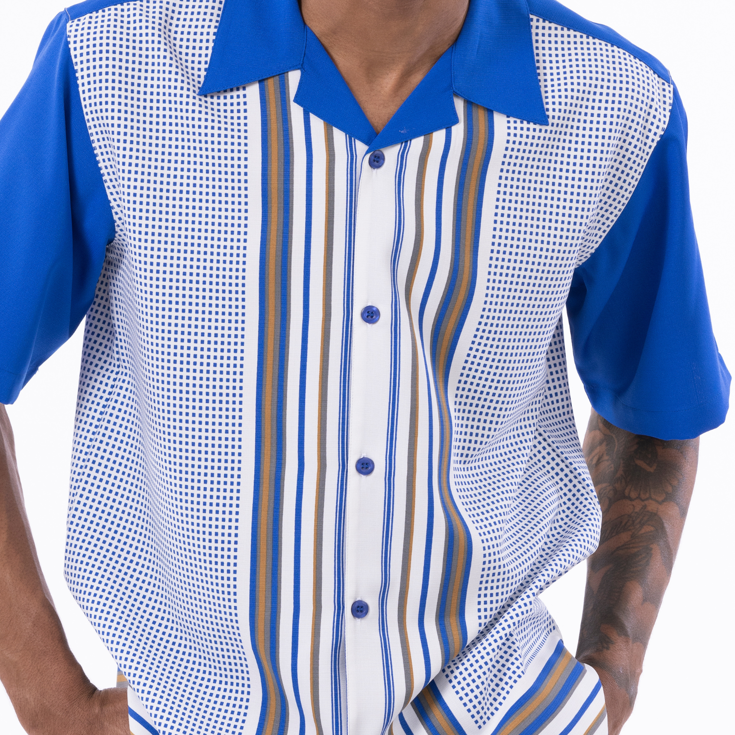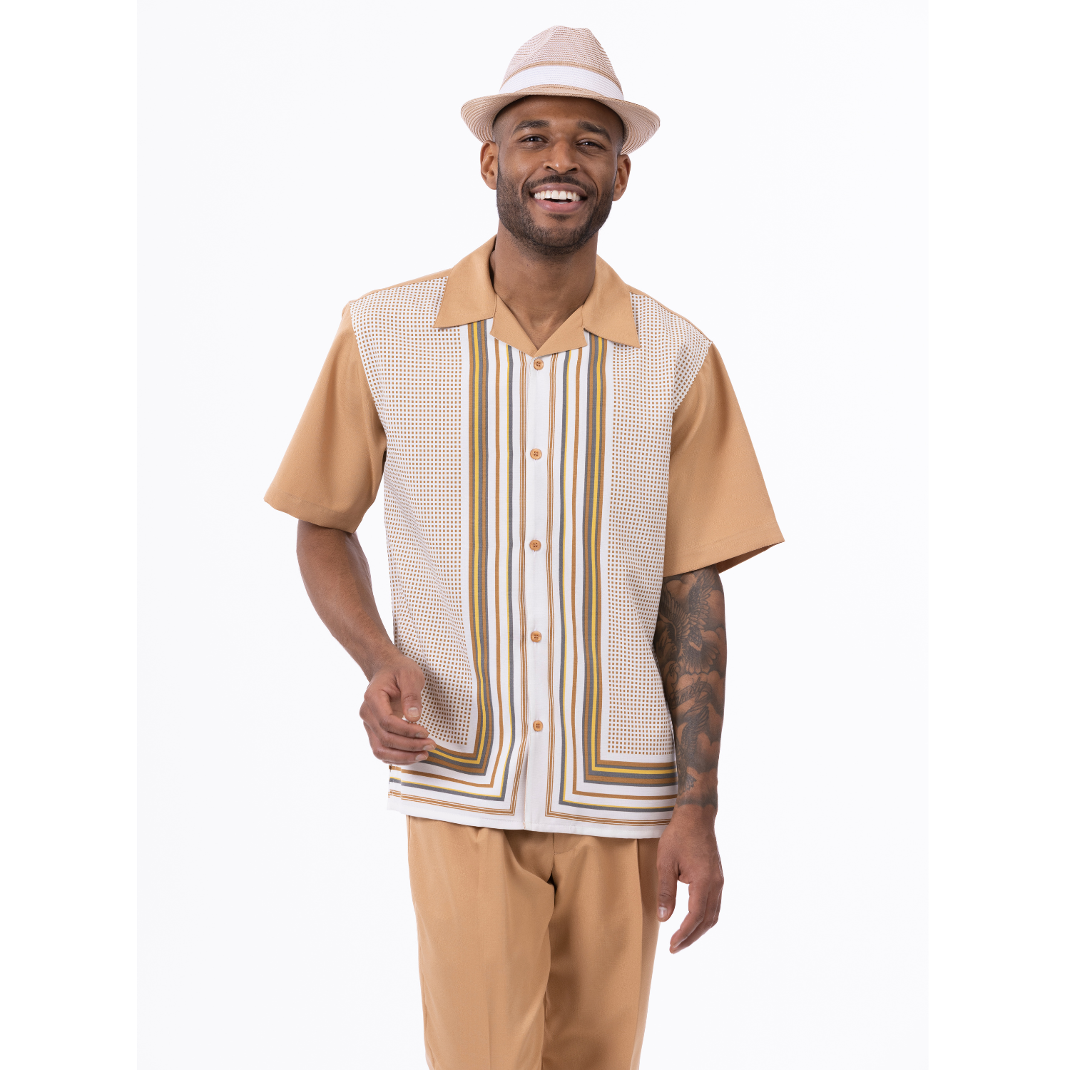 Make a bold entrance with the Urbchic Collection’s symmetry-patterned walking suit, designed for standout style and comfort. This two-piece short sleeve set features a vibrant geometric pattern on a premium polyester shirt, paired with non-pleated matching pants. The open collar and button closure deliver a relaxed yet polished vibe—ideal for spring parties, summer outings, or casual get-togethers. Crafted with breathable fabric and refined details, this set also comes in a short pants version for even more seasonal versatility.