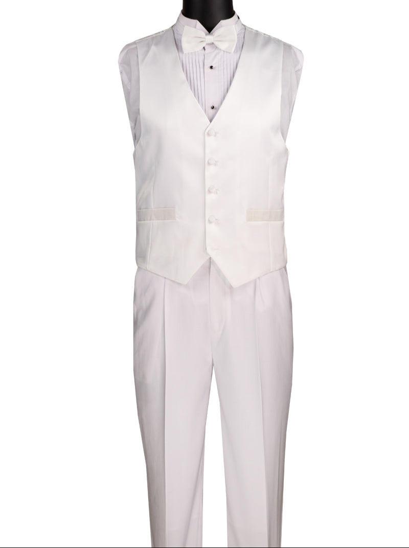 Tempel Collection: White 4-Piece Regular Fit Tuxedo with Vest and Bow Tie