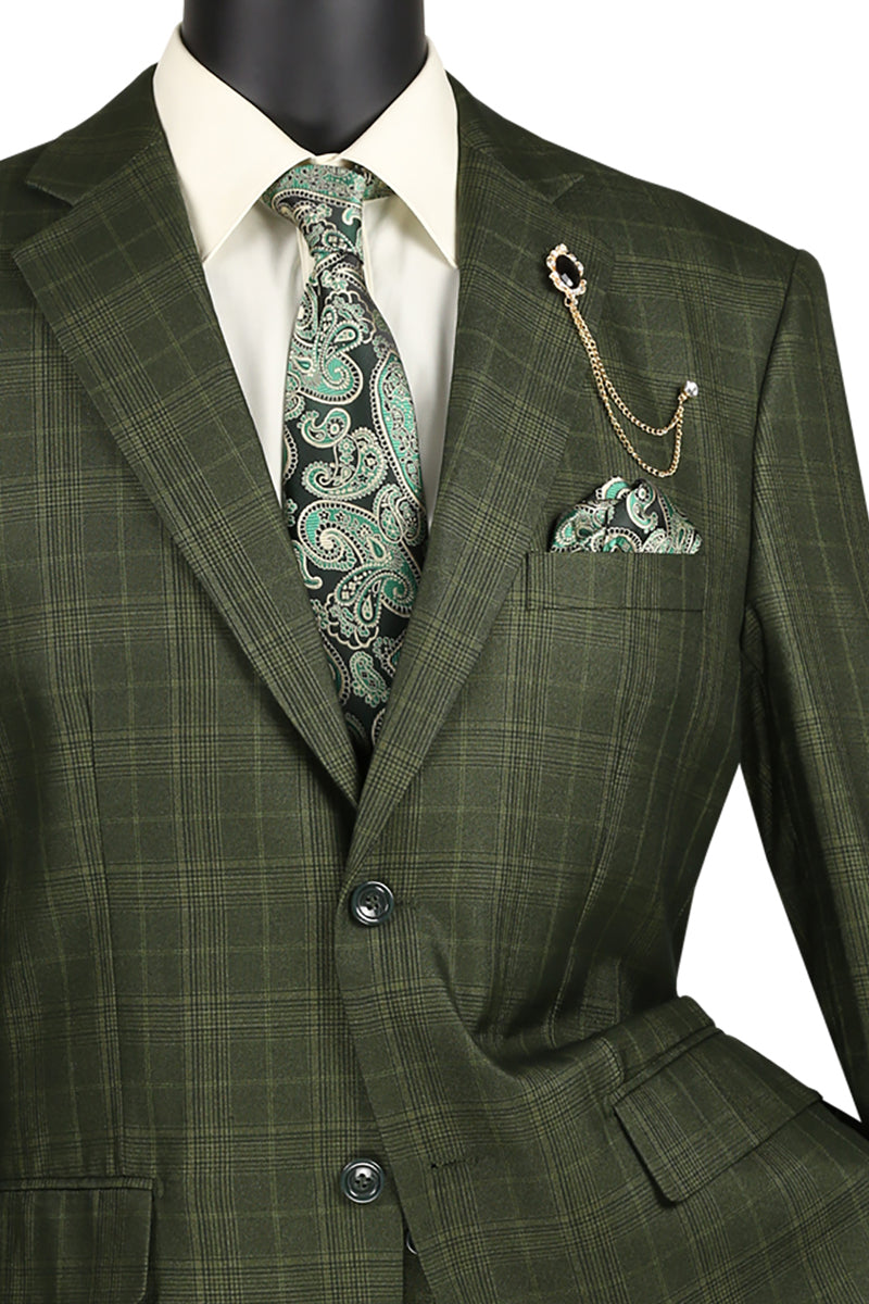 Procyon Collection: Olive Glen Plaid Single-Breasted Classic Fit 3-Piece Suit