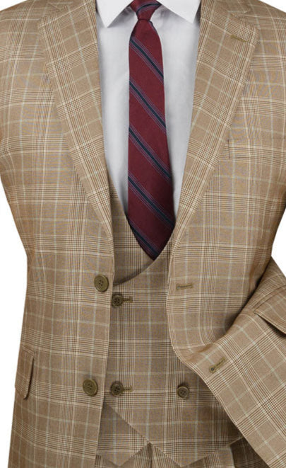 Procyon Collection: Camel Glen Plaid Single-Breasted Classic Fit 3-Piece Suit