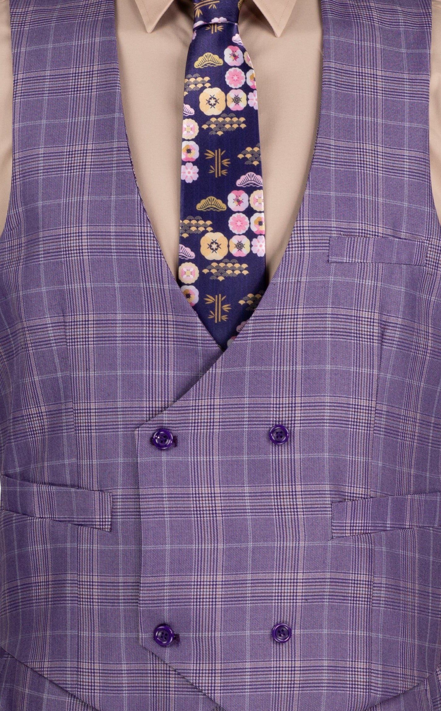 Procyon Collection: Light Purple Glen Plaid Single-Breasted Classic Fit 3-Piece Suit