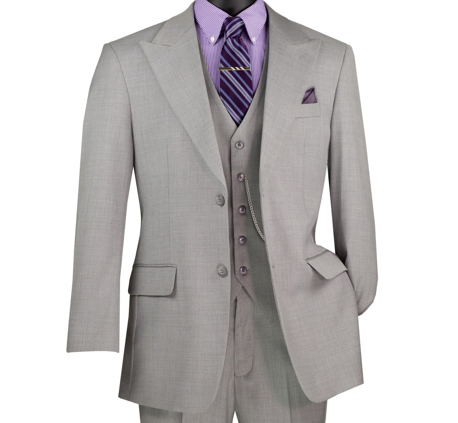 Stello Collection: Light Gray Single-Breasted Regular Fit 3-Piece Suit
