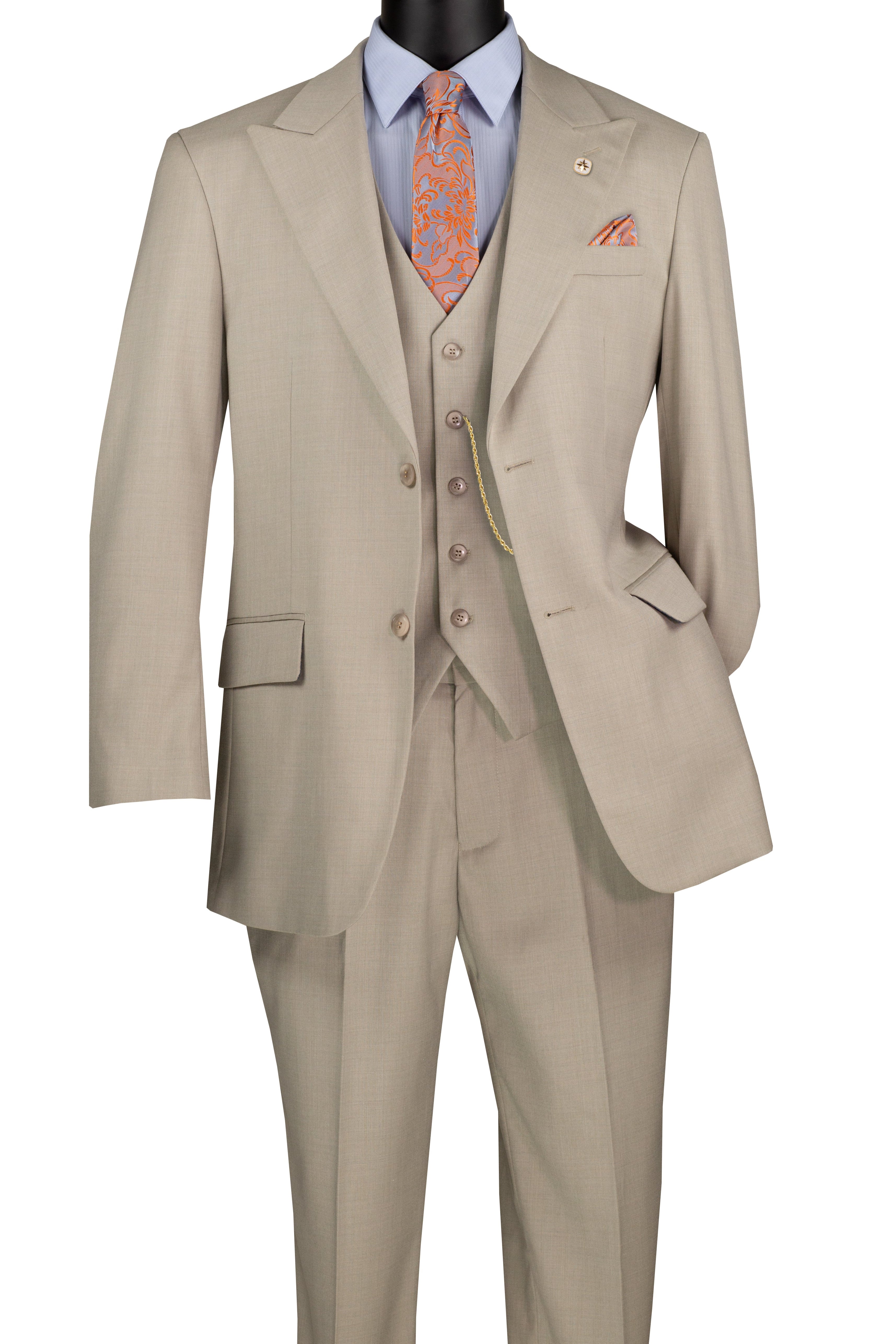 Stello Collection: Oatmeal Single-Breasted Regular Fit 3-Piece Suit