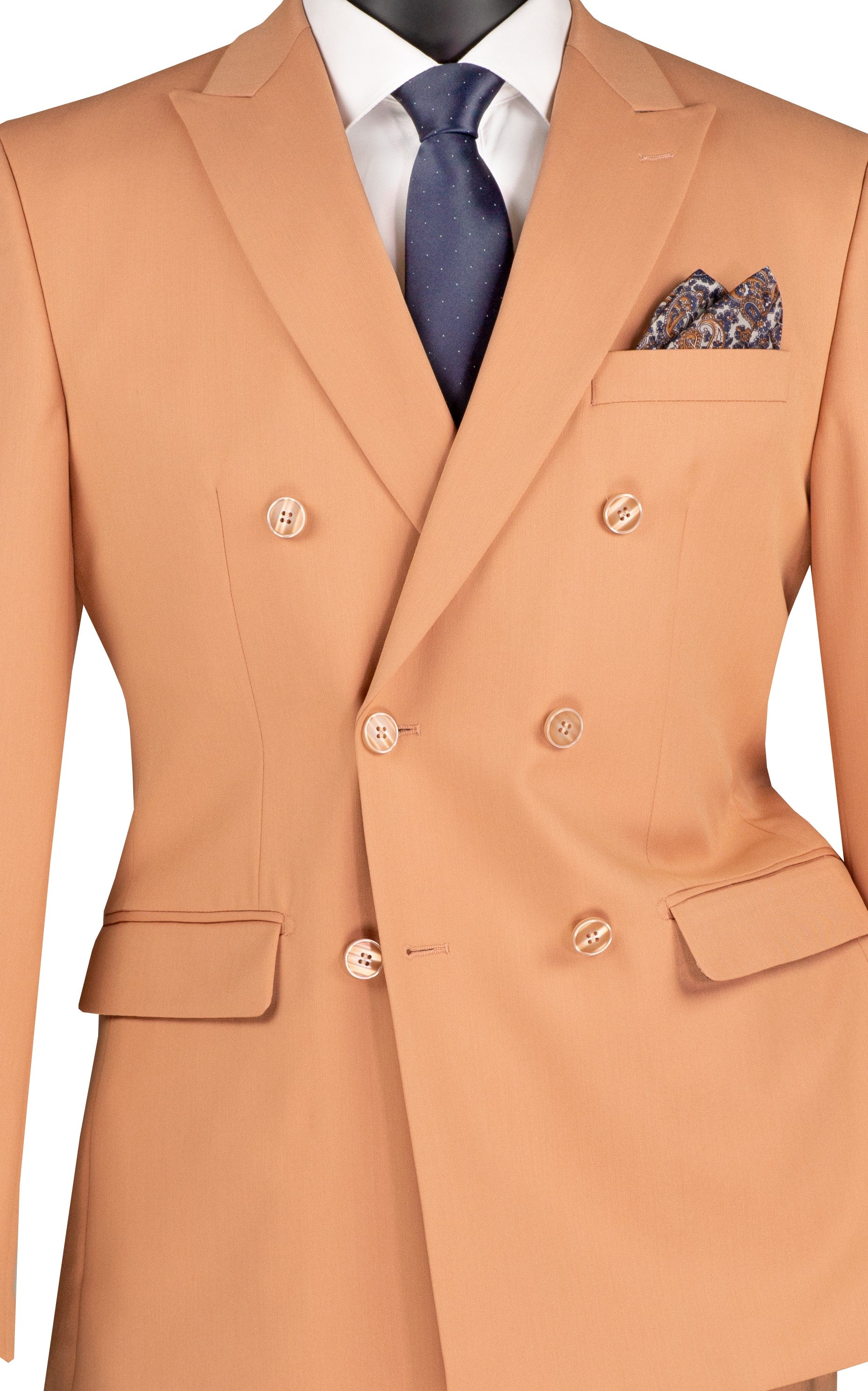Shapley Collection: Peach 2-Piece Slim Fit Double Breasted Suit in Luxurious Stretch Fabric