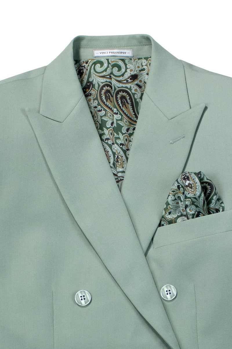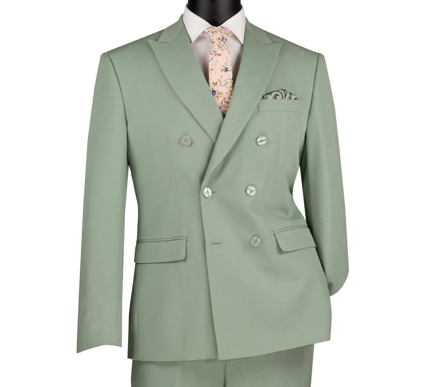 Shapley Collection: Sage Green 2-Piece Slim Fit Double Breasted Suit in Luxurious Stretch Fabric