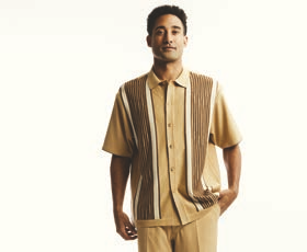 Modern Stripe Collection: Tan Vertical Striped Shirt With Matching Pants