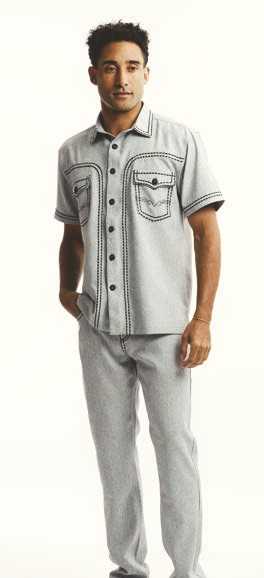 Embroidered Fabric Design in Khaki Short Sleeve Walking Suit