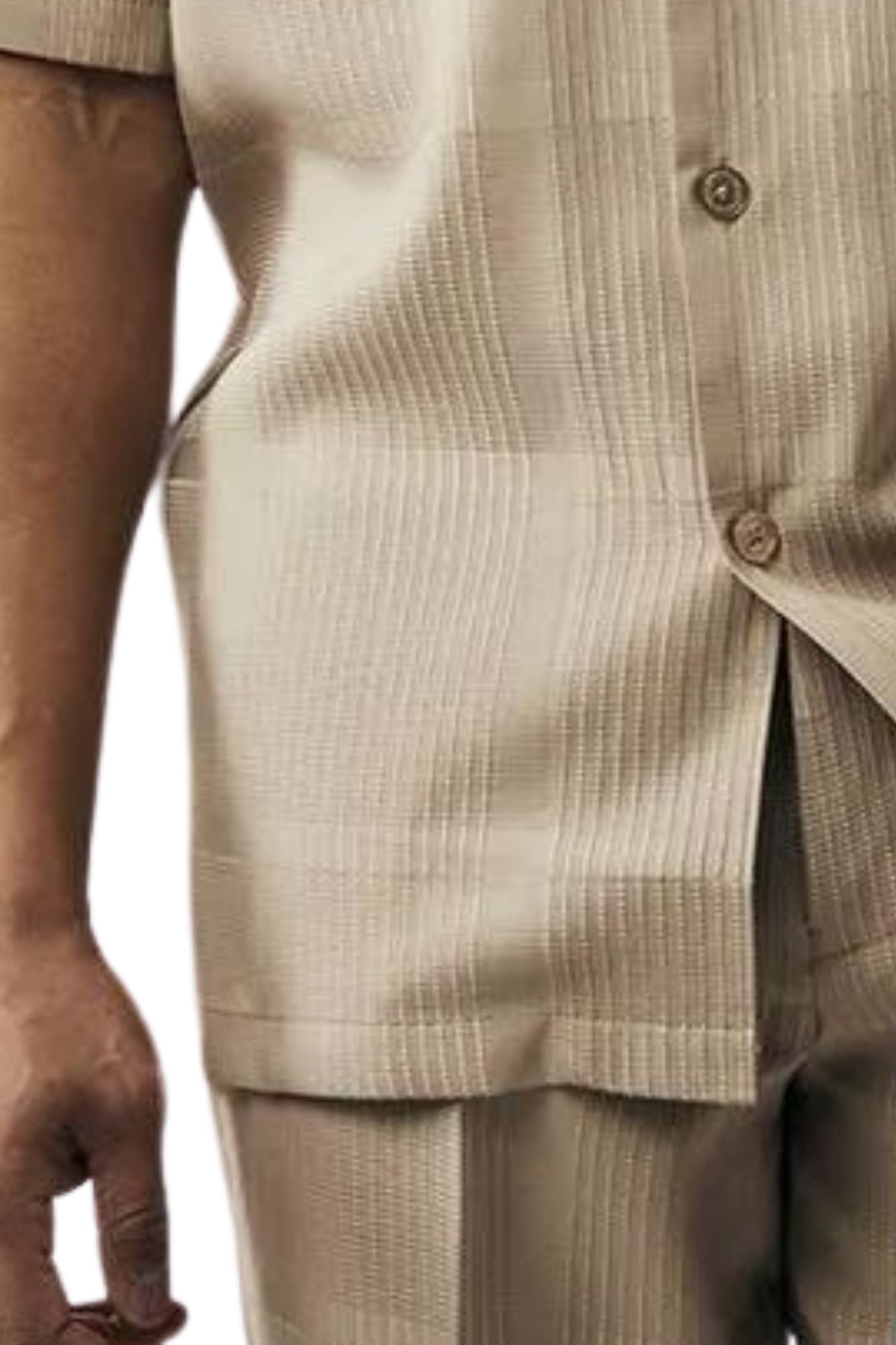 Stacy Adams Collection: 2 Piece Knit Short Sleeve Set With Matching Pants In Tan
