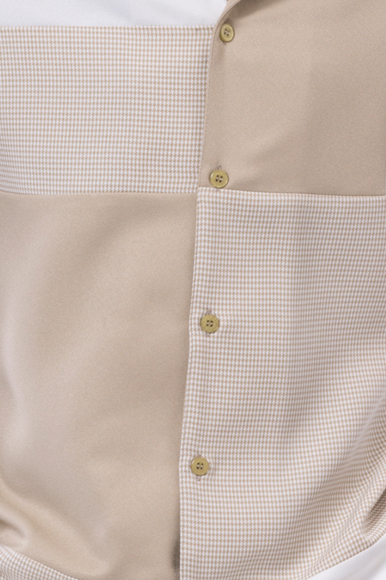Introducing the pinnacle of sophisticated urban style with our Tykes Collection's Khaki Houndstooth Color Block Suit. This 2 piece ensemble artfully blends the classic allure of houndstooth with a bold, modern color block design in sleek Khaki. It's a statement piece that seamlessly bridges the gap between timeless tradition and contemporary fashion. Whether it's for a high-profile meeting or a chic social event, this suit promises to elevate your style quotient.