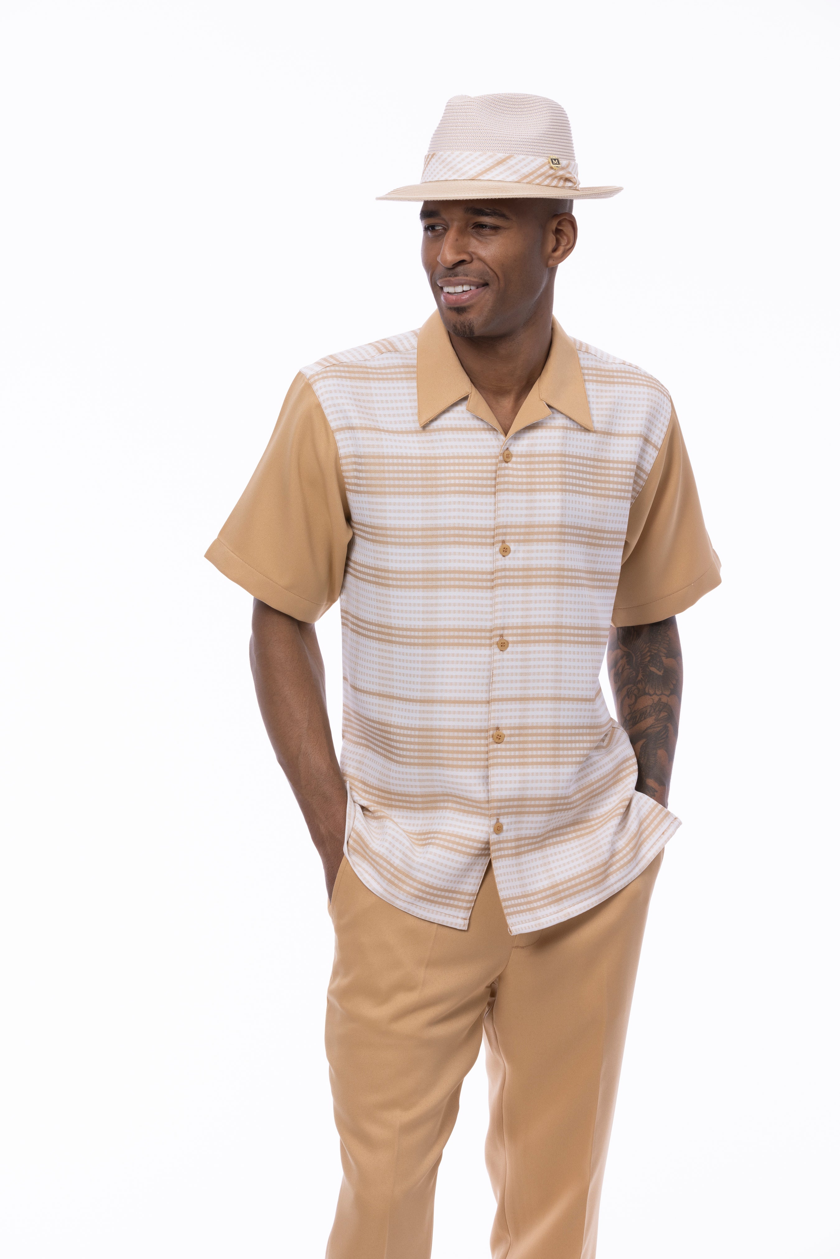 Men's walking suits are coordinated 2-piece leisure sets - a matching shirt and pants designed for comfort and a sharp, put-together look. We carry styles from Montique, Stacy Adams and other top menswear brands, curated for fit, color coordination, and everyday wearability.