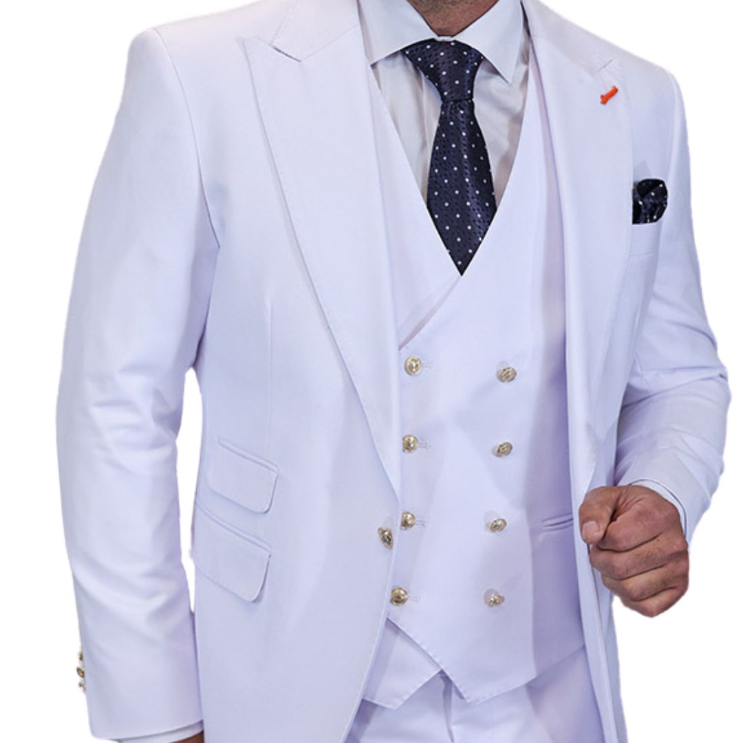 Echelon Collection: White 2-Piece Tailored Fit Double-Breasted Suit with Gold Buttons