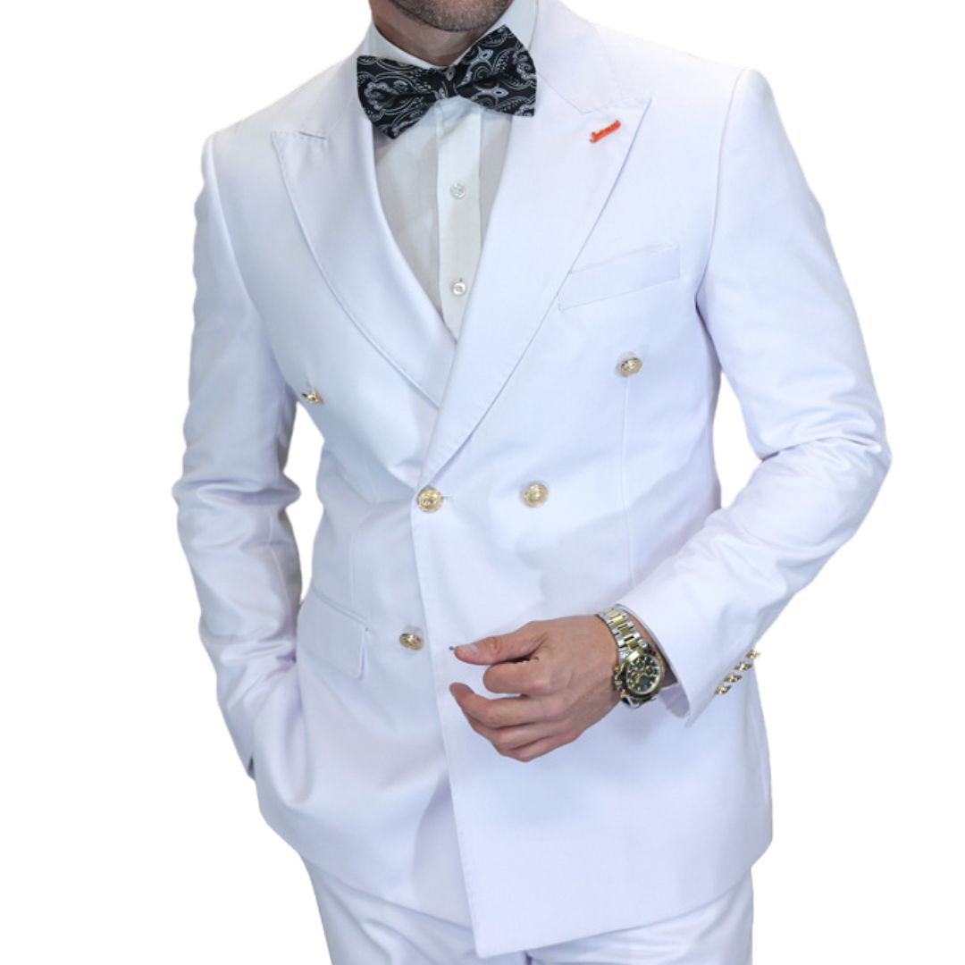Albireo Collection: White 2-Piece Double-Breasted Tuxedo - Modern Fit - Satin Peak Lapel