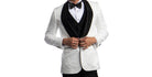 - Jacket: White paisley pattern with a wide shawl lapel in satin.