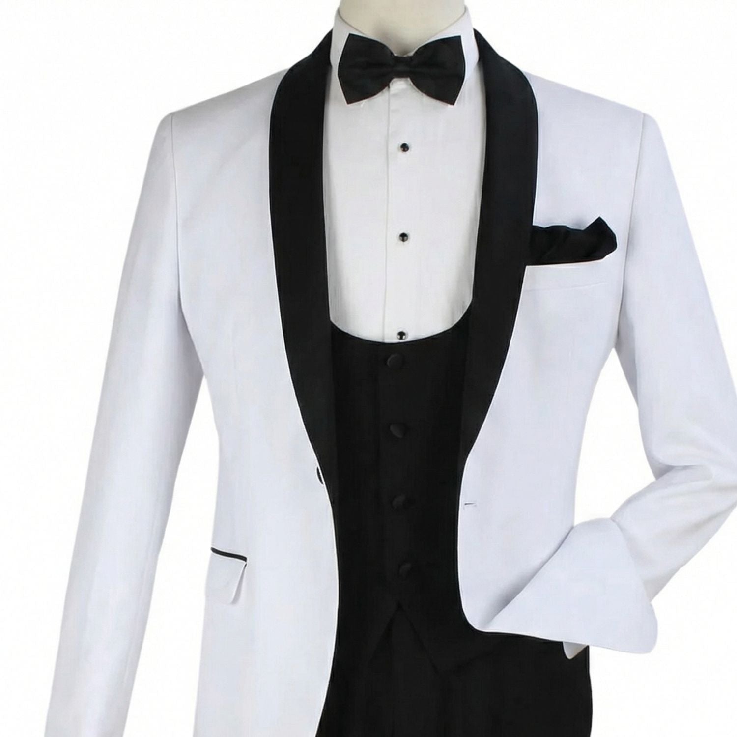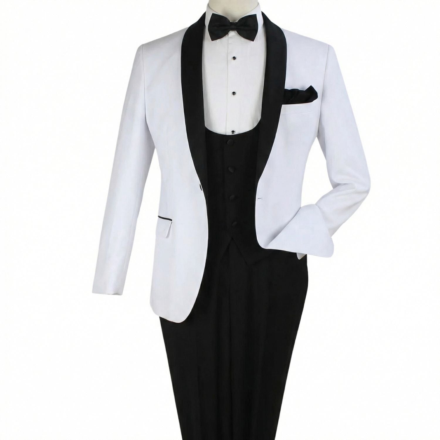 Mirthmere Collection: 3-Piece White Tuxedo with Matching Bow Tie