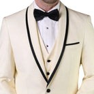 3-Piece Tailored Fit Wool Suit with Bow Tie and Flat Front Pants - Off-White