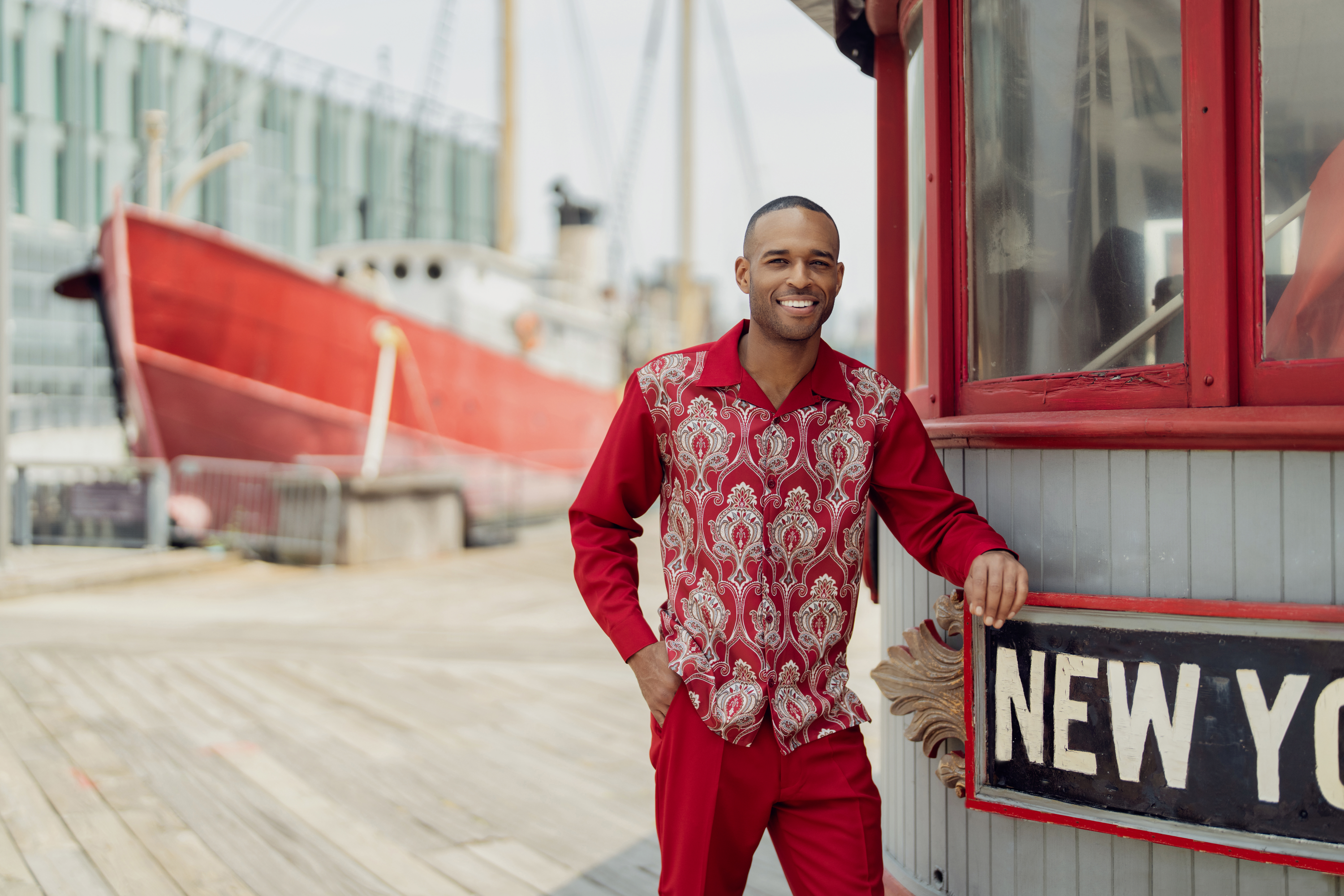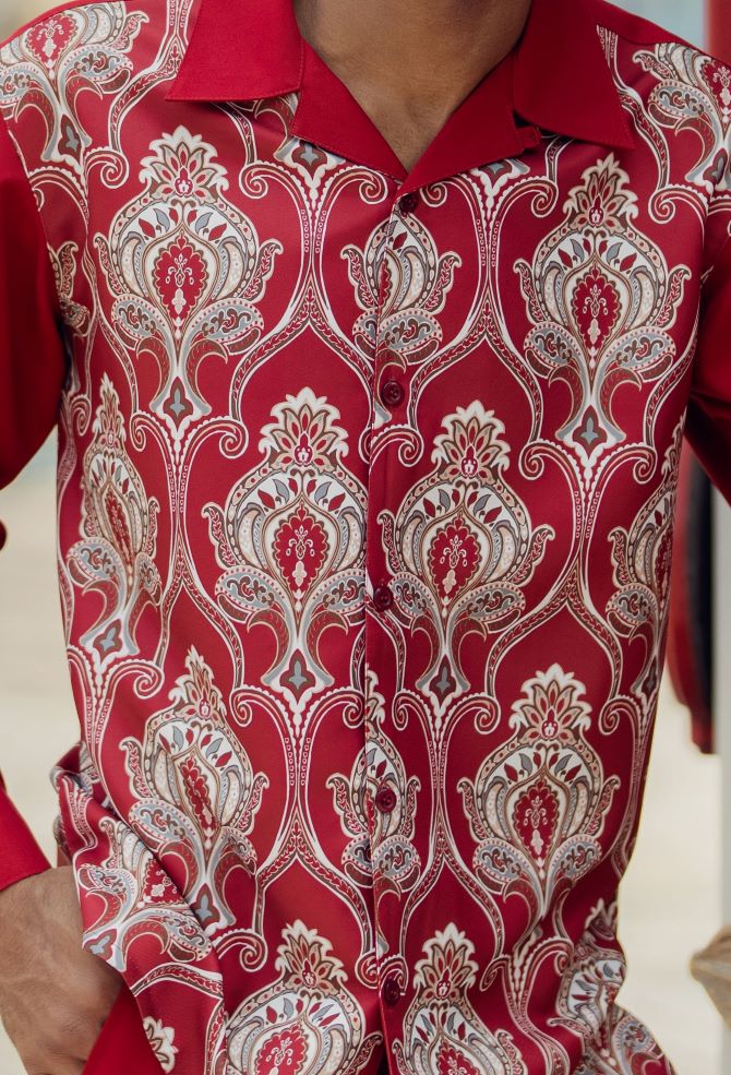 Allurinque Collection: Red Print Design Long Sleeve Walking Suit Set 2377