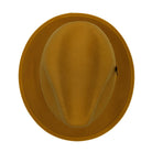 Enhance your style with the Ambley Collection Montique Gold Two-Tone Wool Felt Fedora Hat. Crafted with premium wool felt, this hat features a 2 3/8" brim adorned with a striking red bottom. The matching grosgrain ribbon and feather accent add a touch of elegance. Ideal for adding flair to any outfit, whether it's a casual day out or a special occasion.