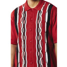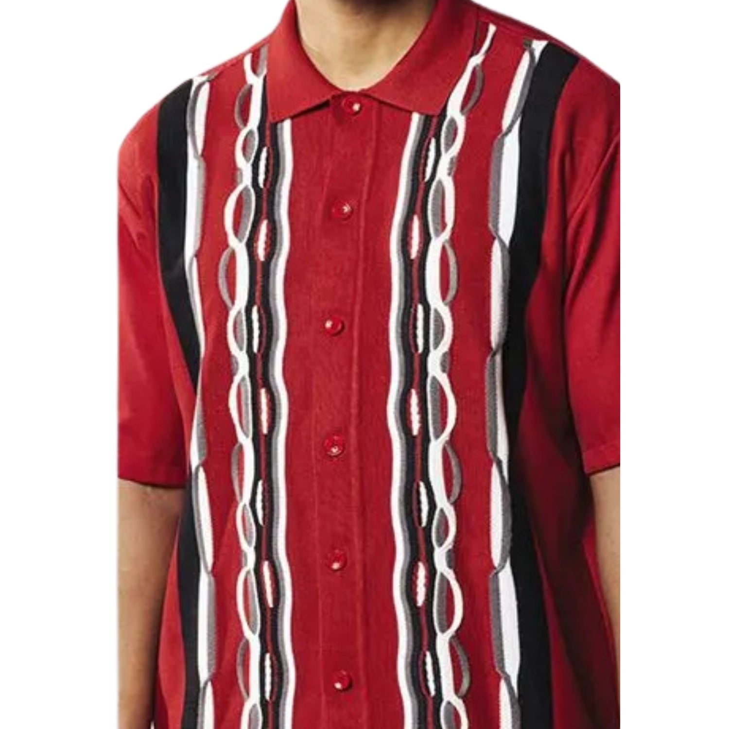 Andromis Collection: Men's Red 2-Piece Short Sleeve Set with Vertical Geometric Stripes