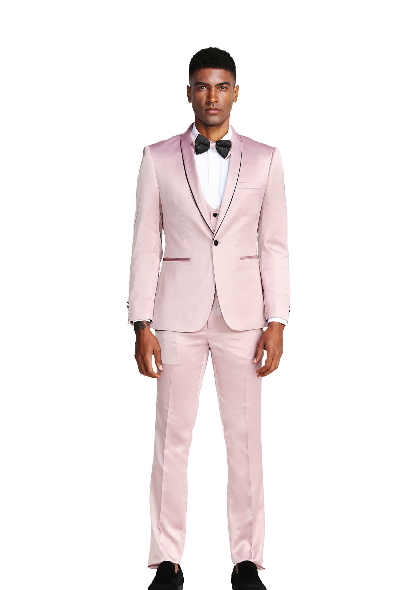 Apex Collection: Men's 3-Piece Suit With Shawl Collar In Rose/Black - Slim Fit