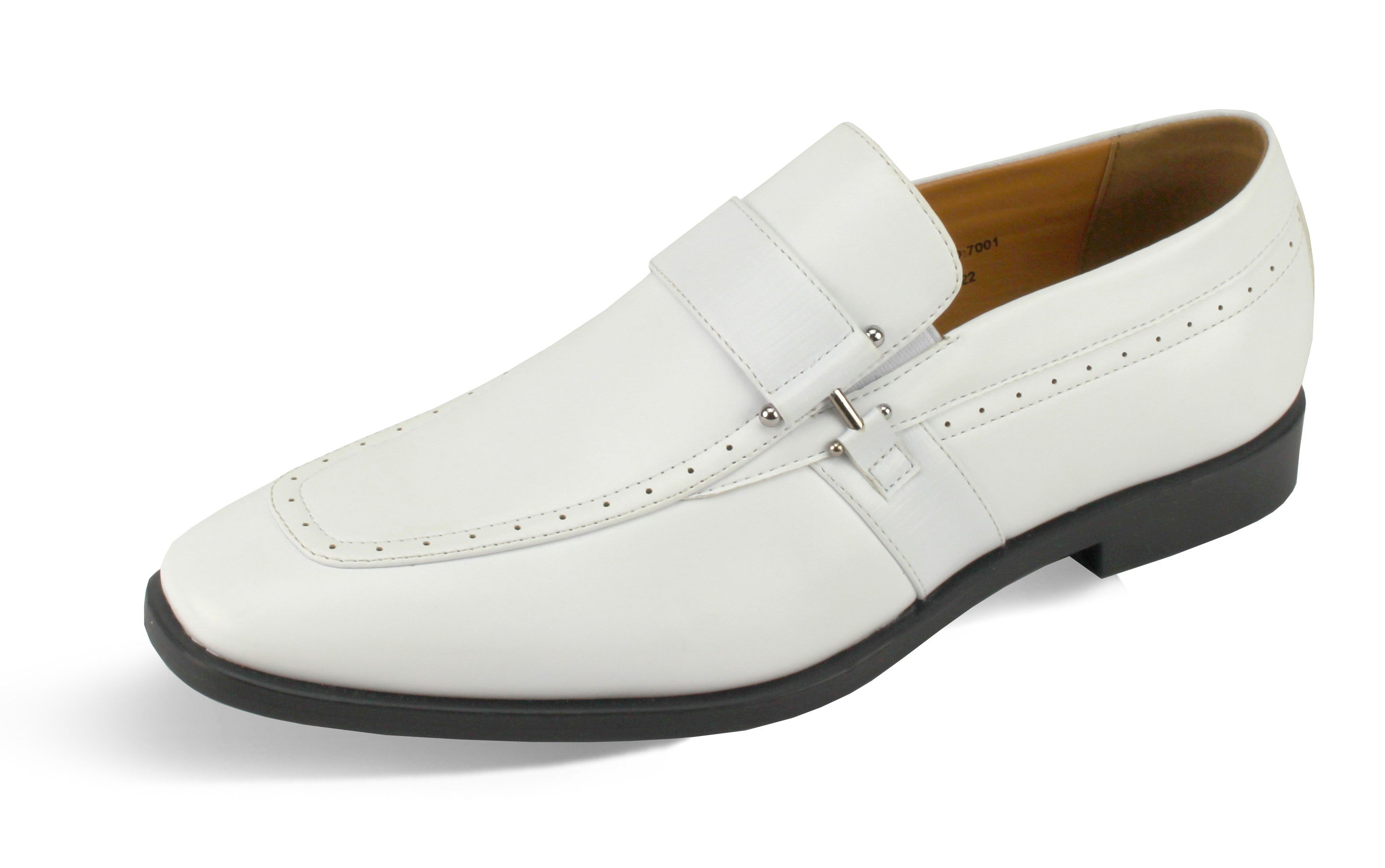 Aquila Collection: Classic White Moc Toe Slip-On Dress Shoes - Medium and Wide
