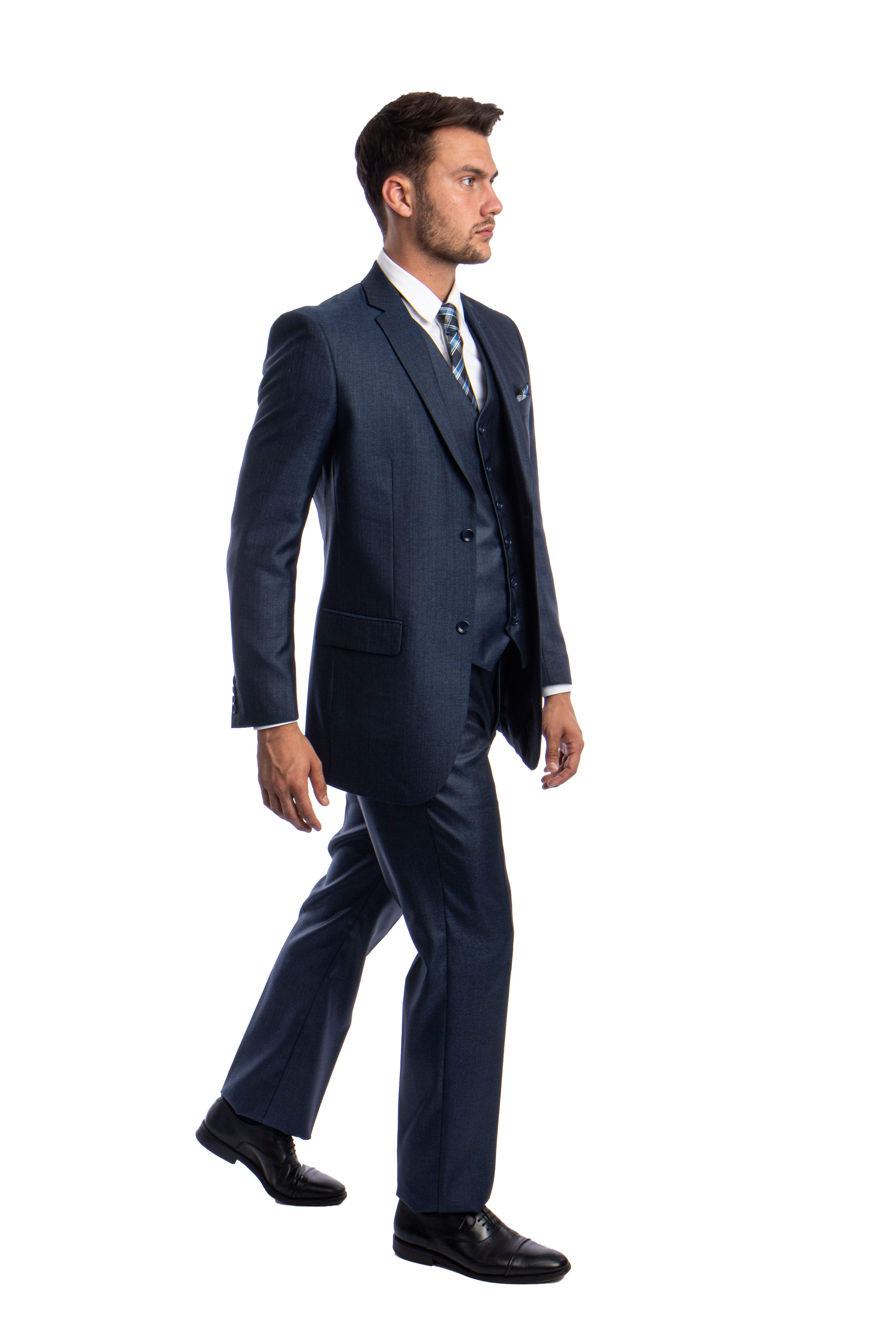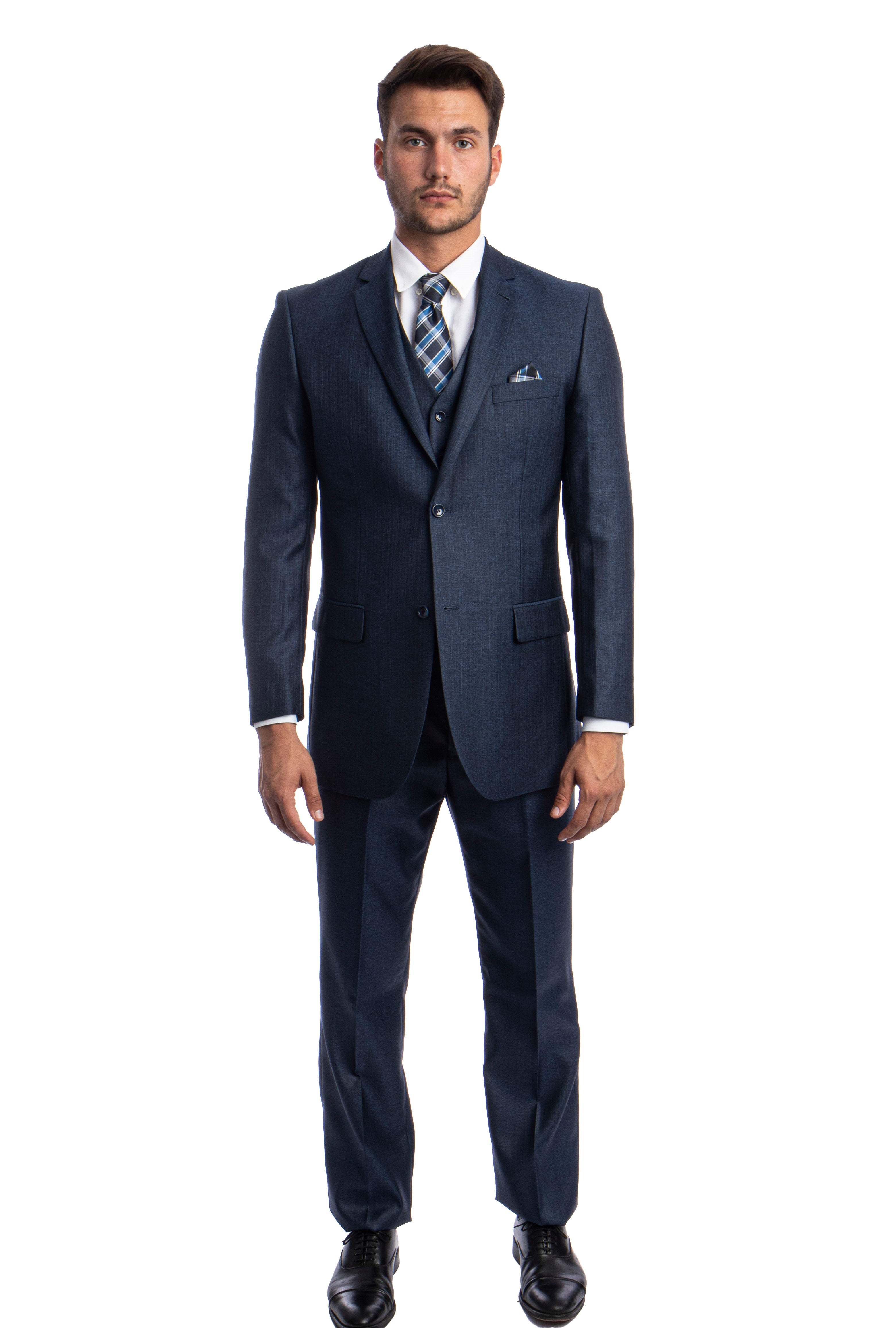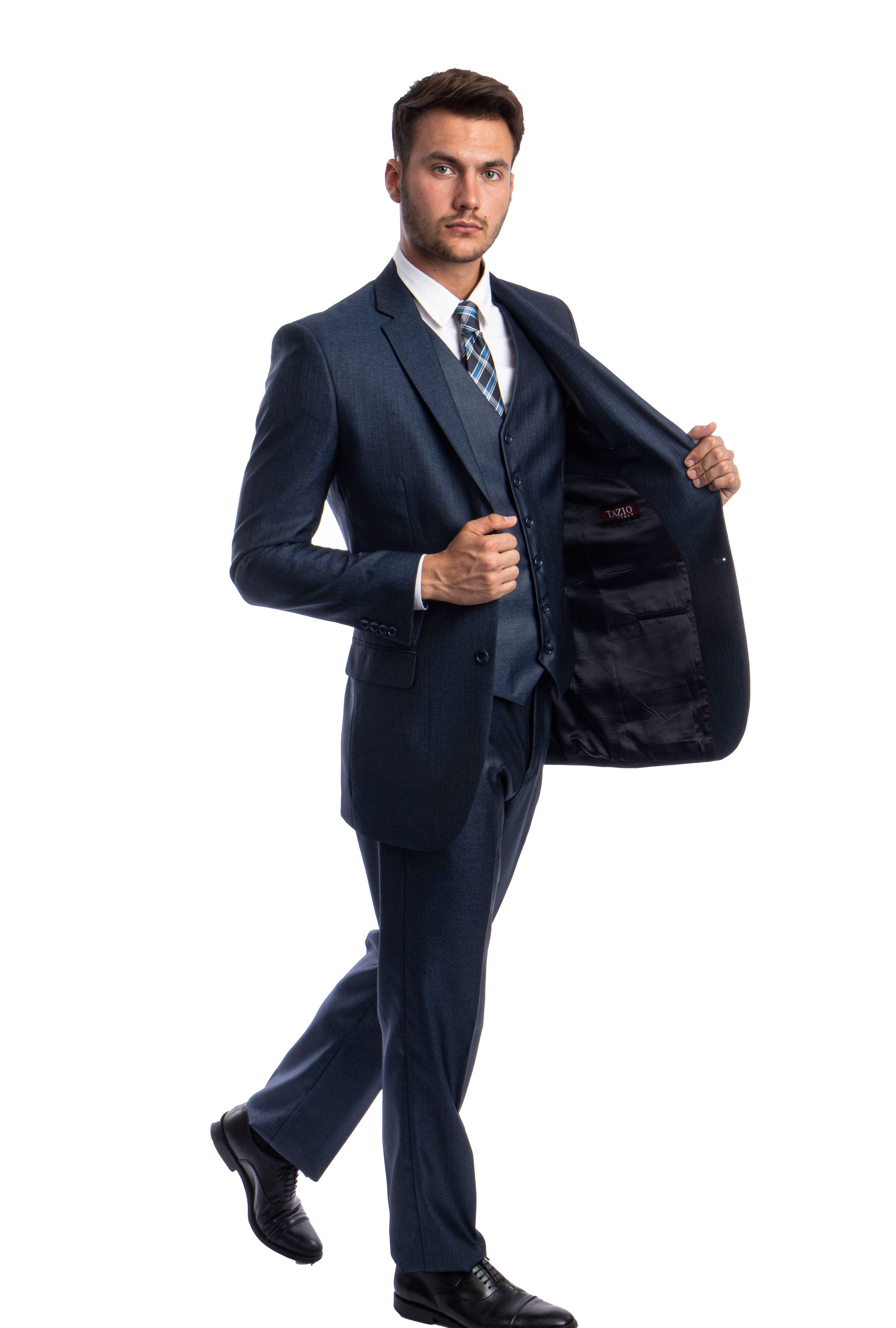 Argonaut Collection: Navy Blue Textured Solid Three-Piece Suit – Modern Fit