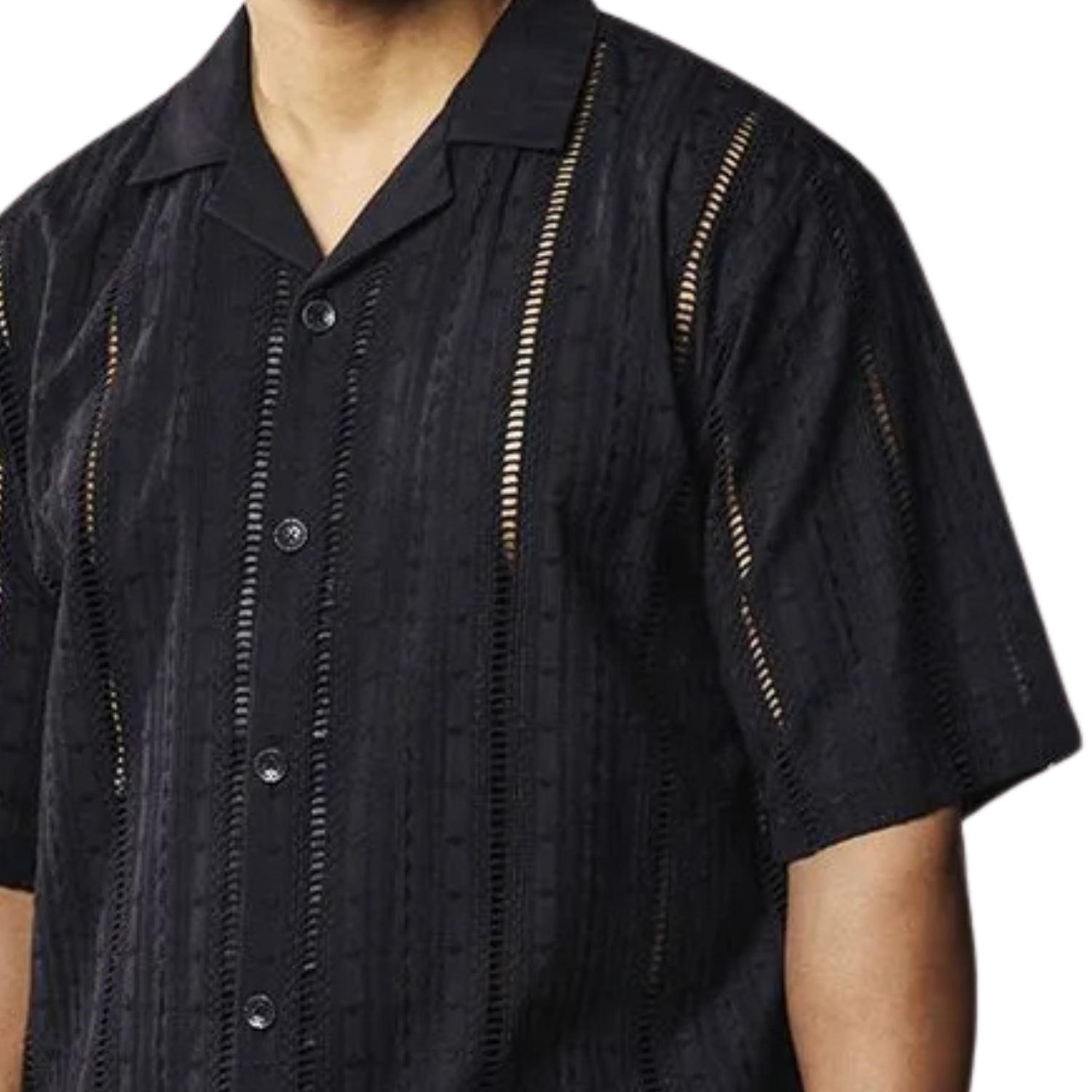 Ascella Collection: Stacy Adams Black Linen Jacquard 2-Piece Short Sleeve Set
