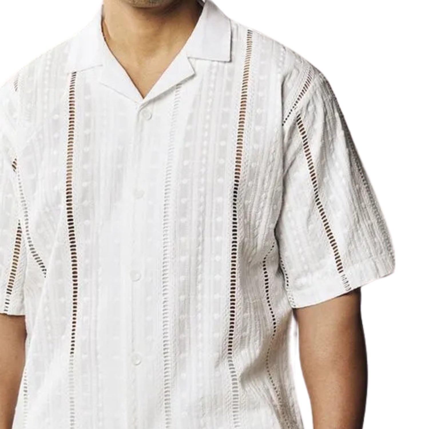 Ascella Collection: Stacy Adams White Linen Jacquard 2-Piece Short Sleeve Set