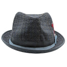 Ashford Collection: Scala Tweed Wool Blend Fedora with 1 3/4” Brim and Double Bow - Navy