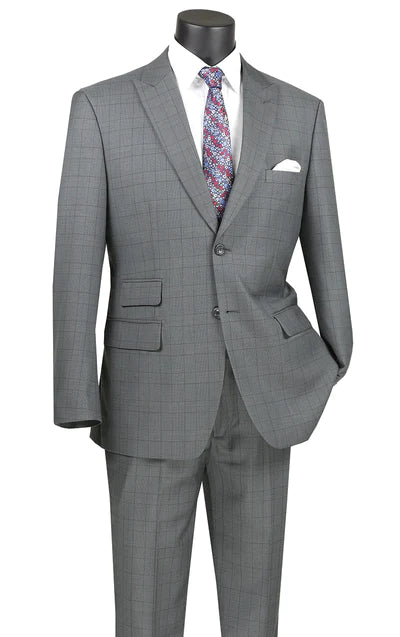 Astro Collection: Grey 2 Piece Windowpane Single Breasted Modern Fit Suit