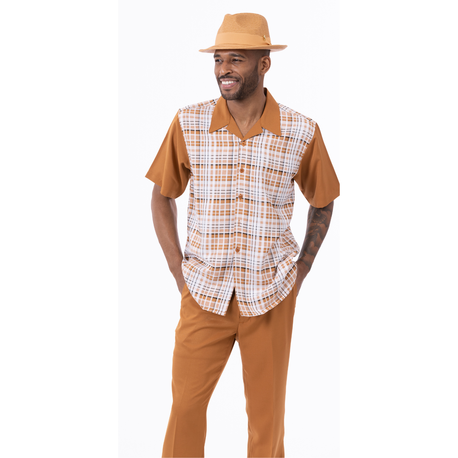 Cognac Plaid Walking Suit 2 Piece Short Sleeve Set 2302