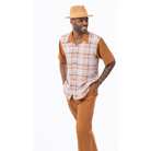 Athena Collection: Cognac Plaid Walking Suit 2 Piece Short Sleeve Set
