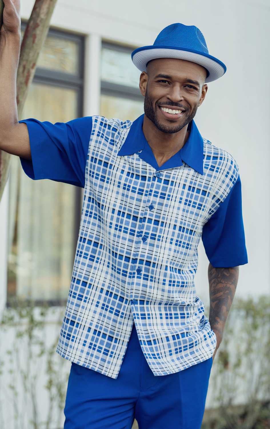 Montique Cobalt Plaid Walking Suit 2 Piece SHORTS SET 72302