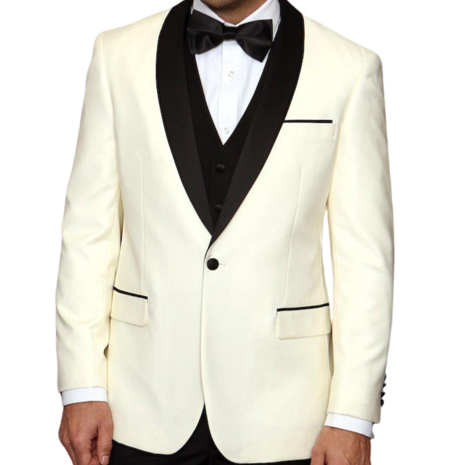 Atlas Attire Collection: 3PC Tailored Fit Tuxedo in Off White