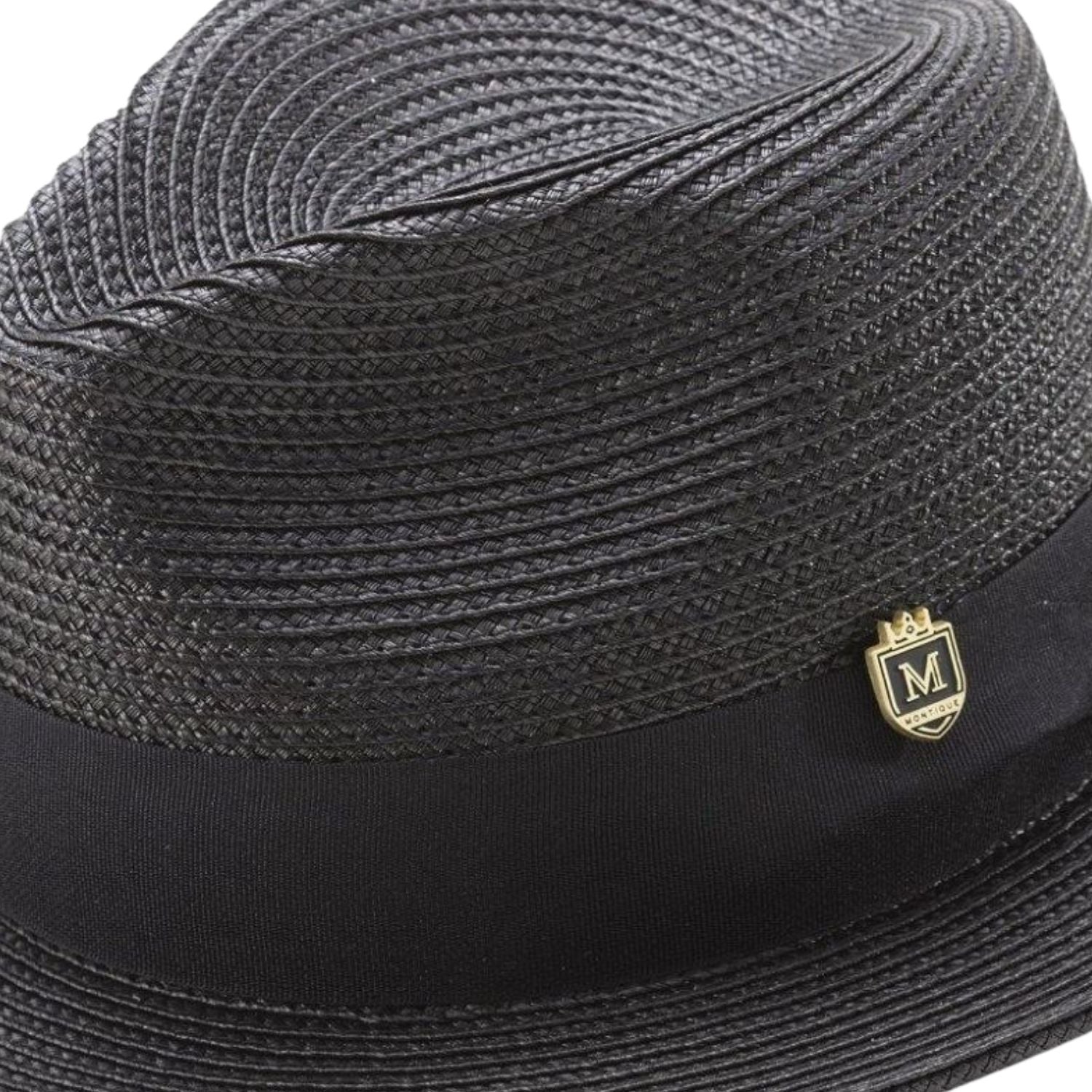 Aurorify Collection: Black Braided Wide Brim Pinch Fedora Matching Grosgrain Ribbon Hat