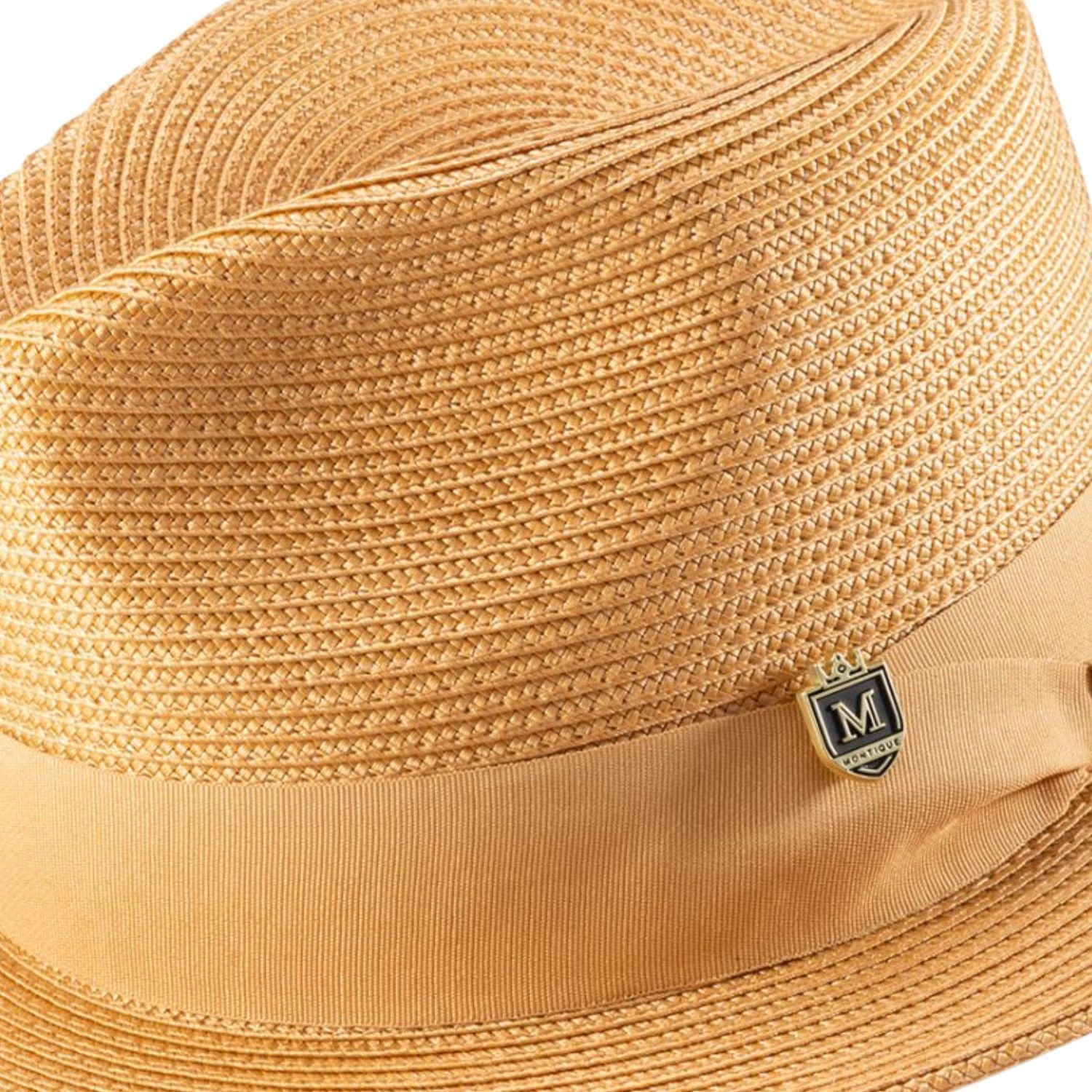 Make a statement with our eye-catching Tan Braided Wide Brim Pinch Fedora Matching Grosgrain Ribbon Hat H42! Crafted from a lightweight polyester blend and featuring a stylishly braided pinched crown, a matching grosgrain ribbon, and a wide 2 1/2" brim, this fedora is sure to turn heads. Plus, with the addition of an elegant Montique pin, your look will truly stand out. Ready to rock the house?