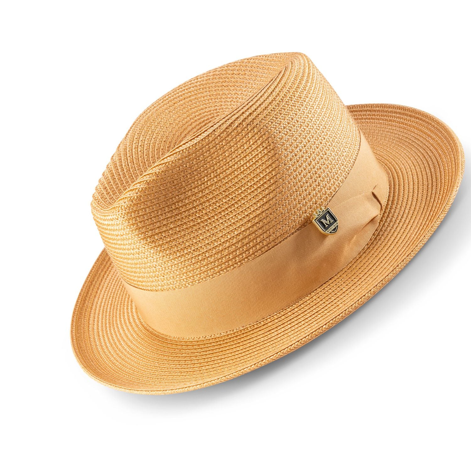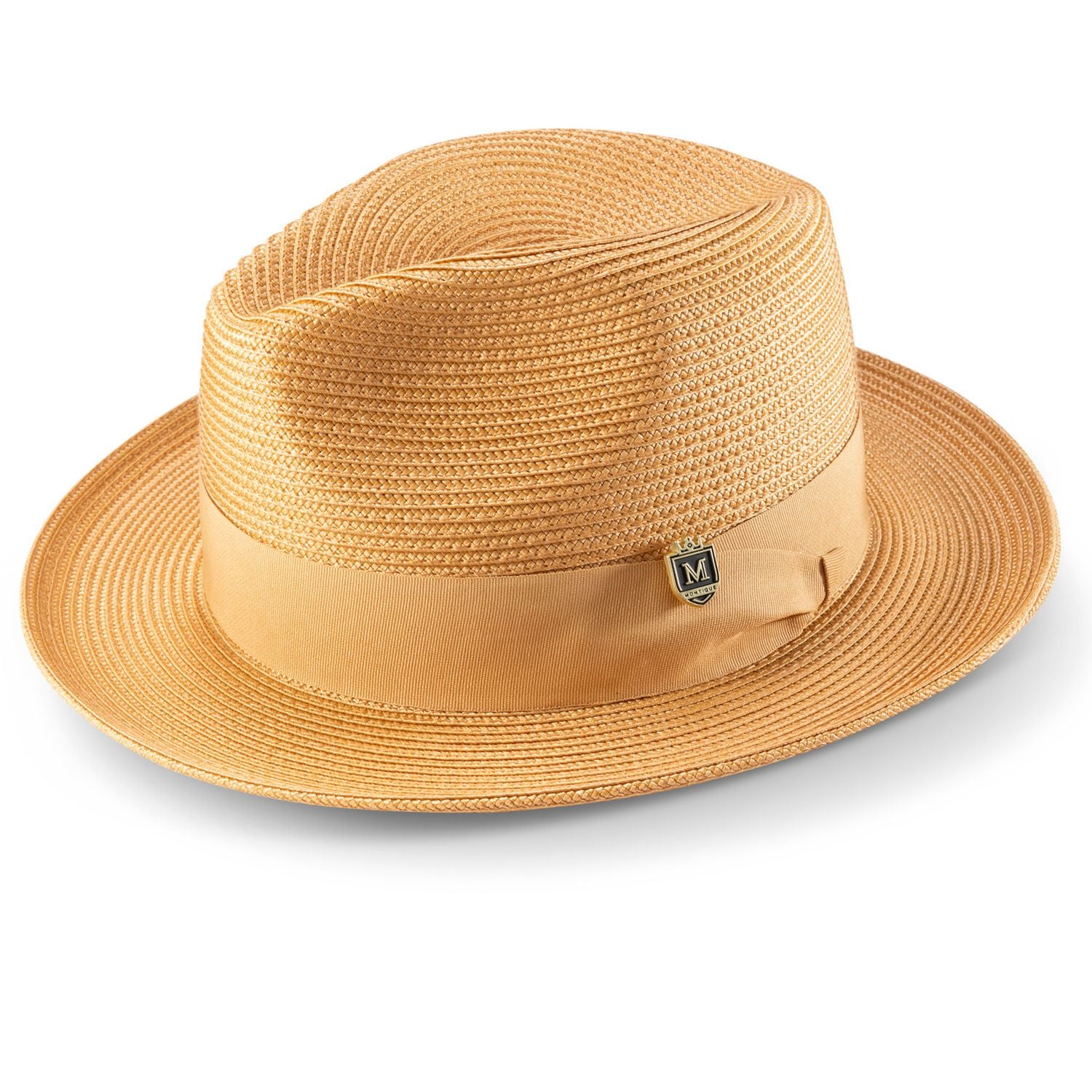 Aurorify Collection: Tan Braided Wide Brim Pinch Fedora Matching Grosgrain Ribbon Hat