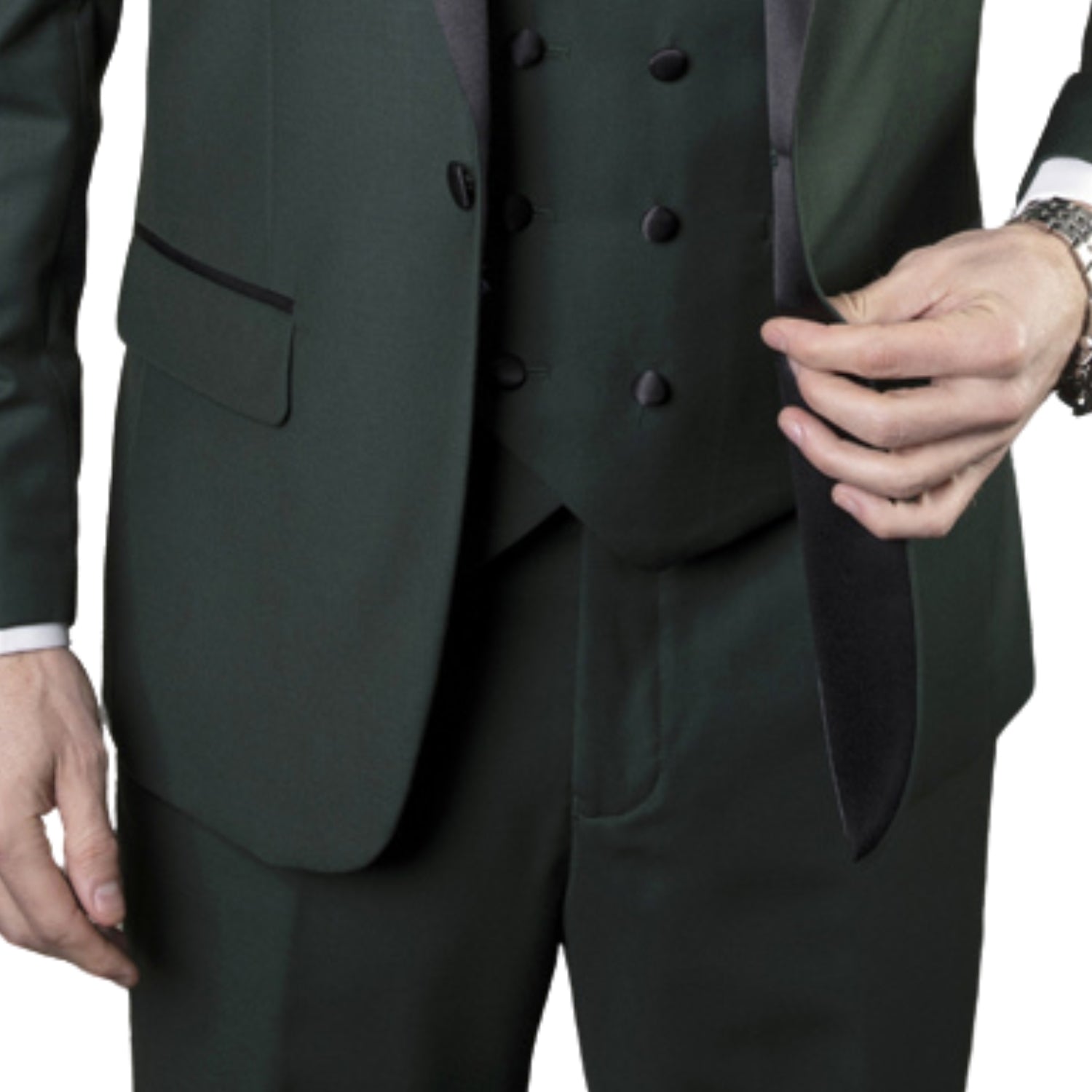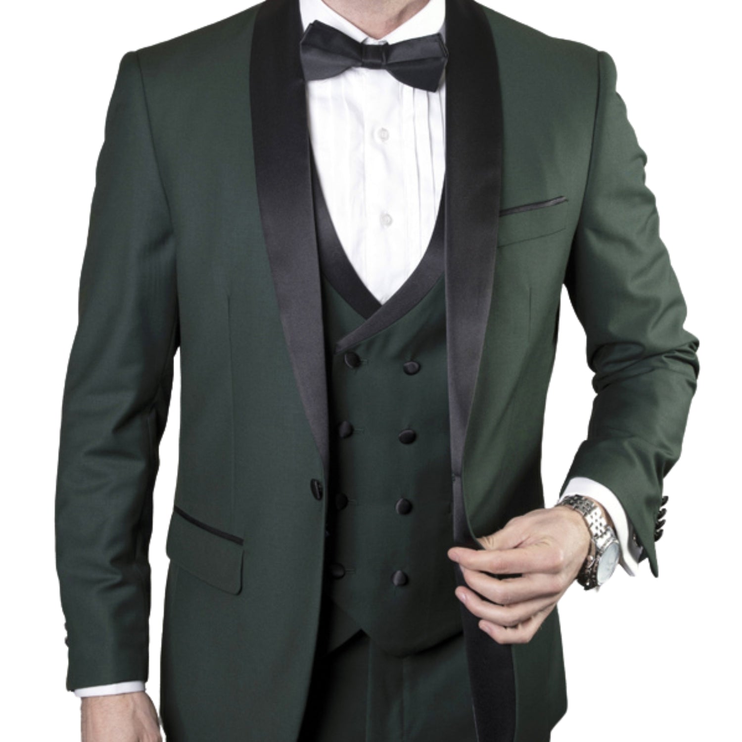 Austen Aura Collection: 3PC Tailored Fit Tuxedo in Hunter Green with Double Breasted Vest