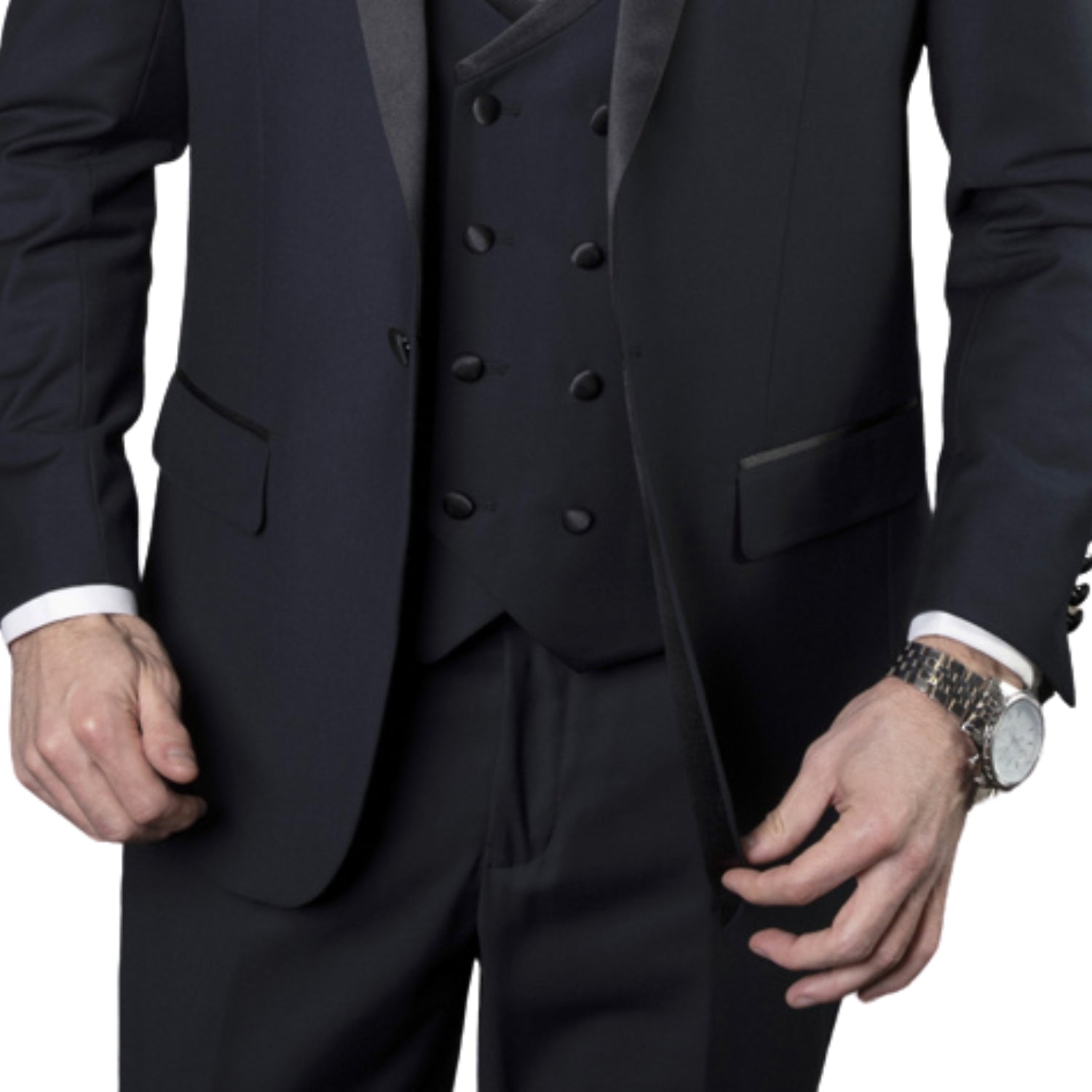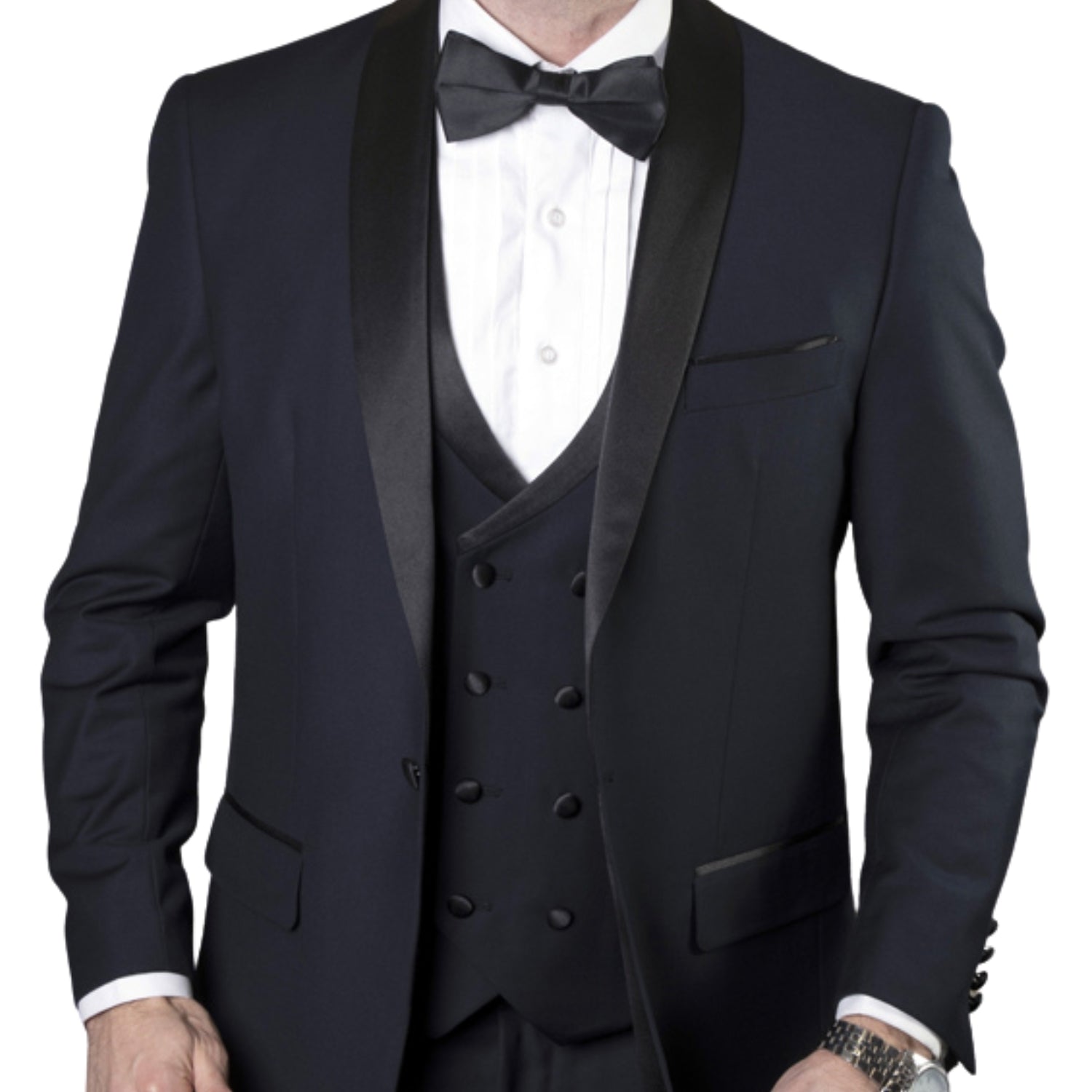 Austen Aura Collection: 3PC Tailored Fit Tuxedo in Navy with Double Breasted Vest