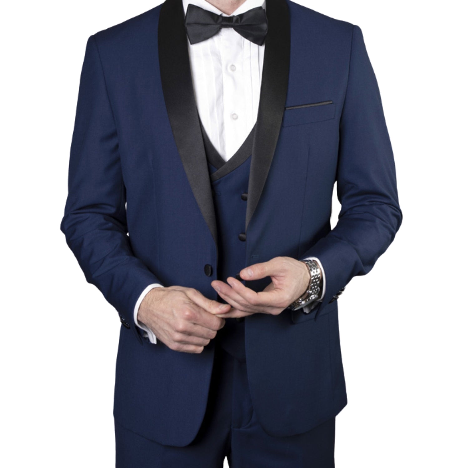 Austen Aura Collection: 3PC Tailored Fit Tuxedo in Sapphire with Double Breasted Vest