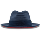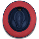 Azuremble Collection: Navy Wide Brim Red Bottom Braided Pinch Fedora Hat