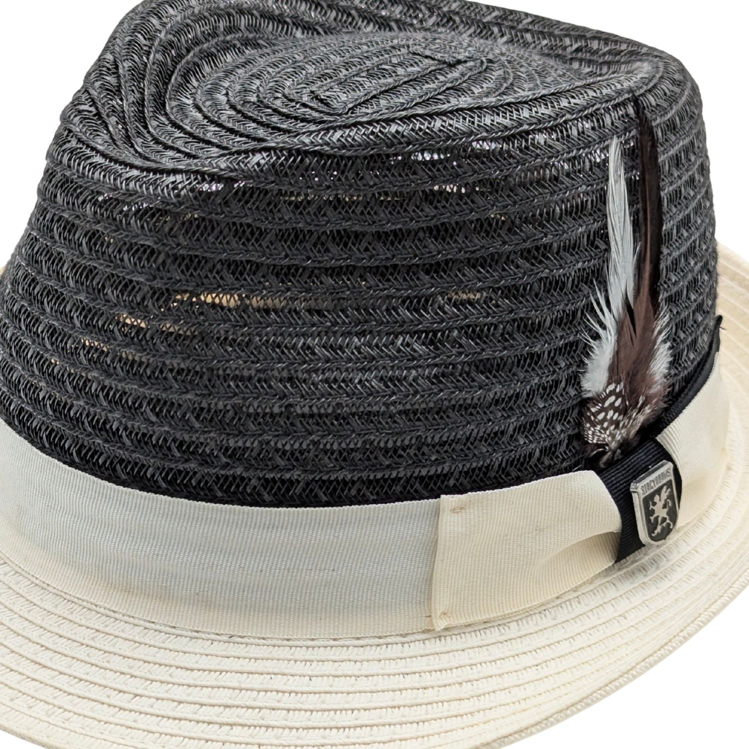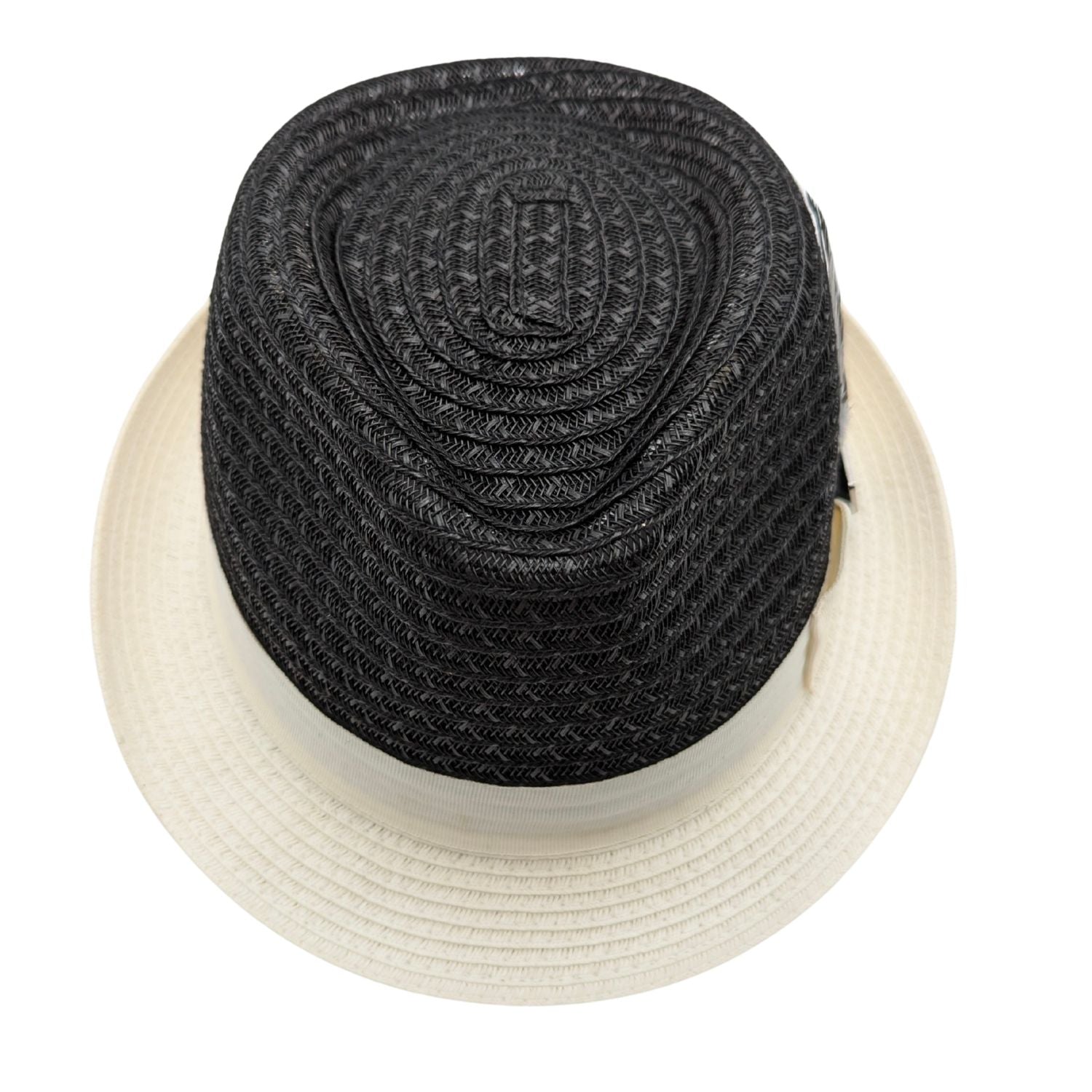 Beaumont Collection: Stacy Adams Black & White Vented Paper Braid Fedora with Grosgrain Bow