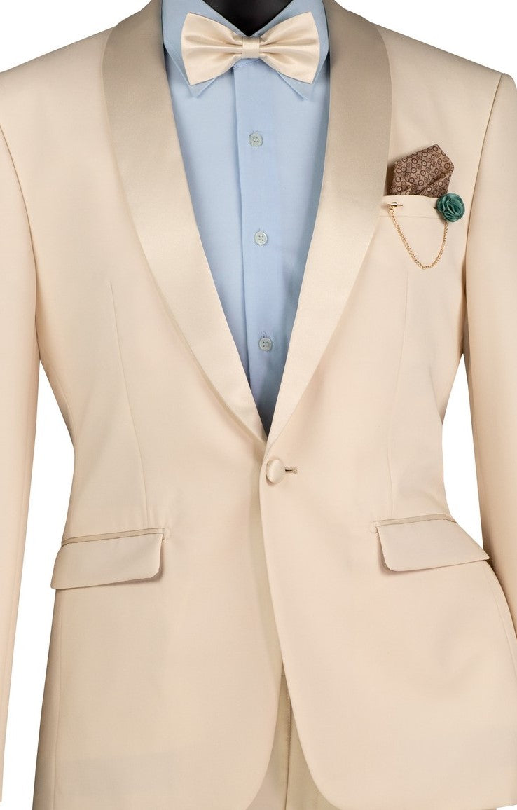 Bellatrix Collection: Champagne 2-Piece Luxurious Stretch Slim Fit Tuxedo with Shawl Lapel